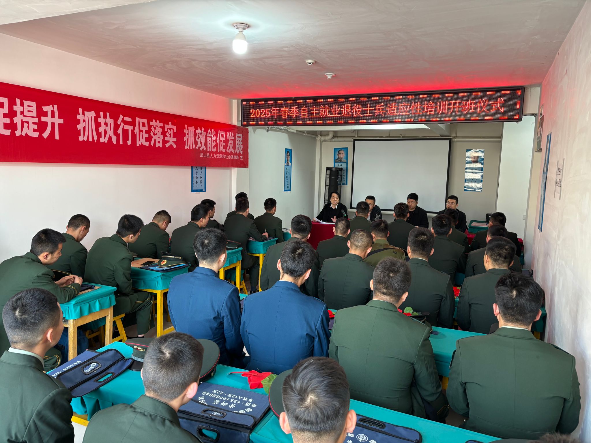 热血青春磨砺报国志,荣耀归来扬帆新征程。为切实增强退役军人的荣誉感、归属感,帮助他们尽快适应从部队到地方的角色转变,营造“一日参军,一生光荣”的浓厚氛围,3月18日,武山县退役军人事务局举办2025年春季自主就业退役士兵欢迎仪式暨适应性培训开班仪式,县退役军人事务局负责同志和承训学校负责人及33名自主就业退役士兵参加。