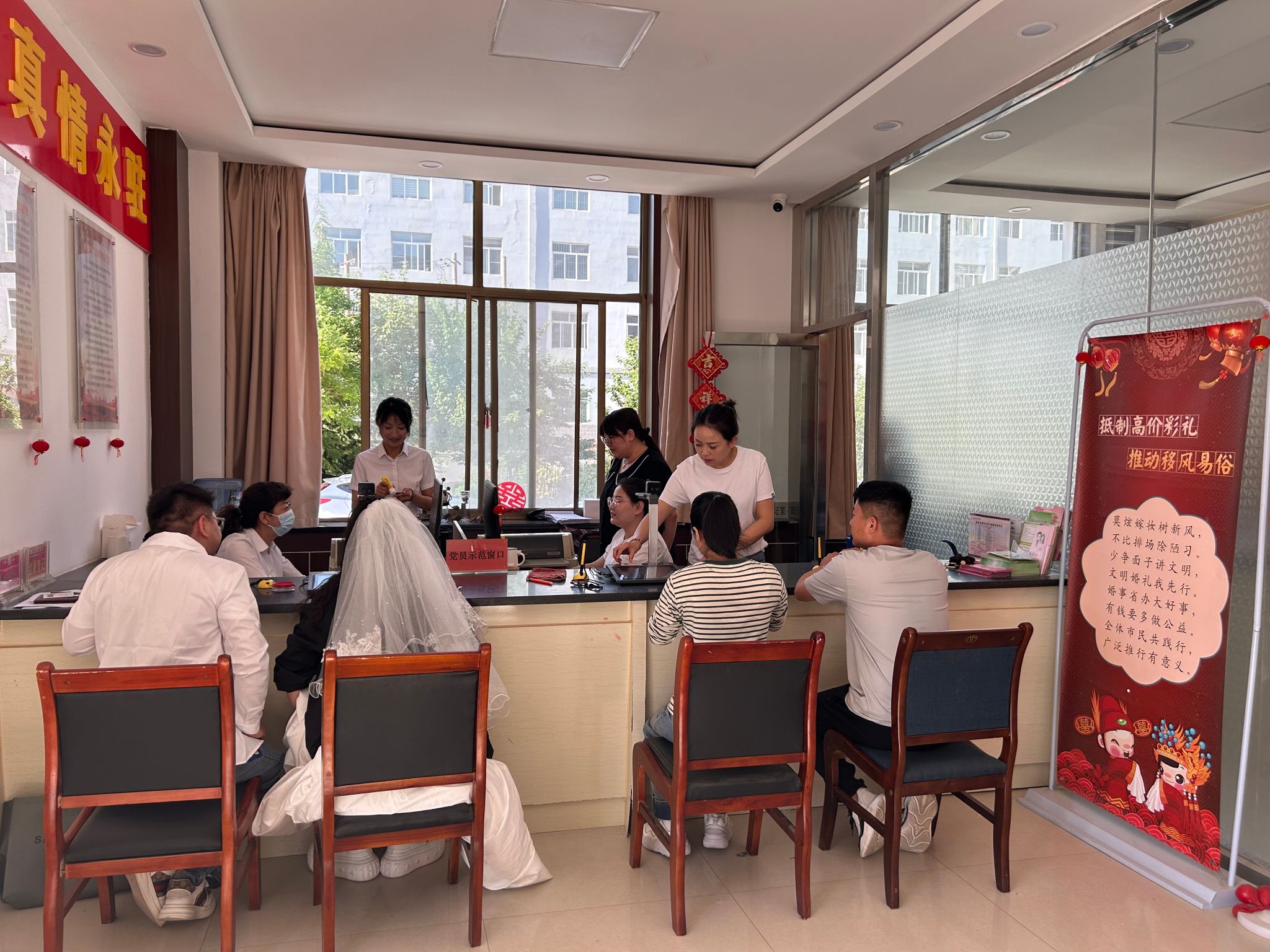 为大力推进婚俗改革,弘扬婚事新办简办的文明新风和“注重家庭家风家教建设”的婚姻家庭理念。县民政局联合县委宣传部、县委社工部开展了“抵制高额彩礼、倡导文明婚俗”宣传活动,积极推广婚姻家庭法律知识,发放《中华人民共和国民法典》婚姻家庭篇、《武山县“抵制高额彩礼、倡导文明婚俗”倡议书》《婚俗改革宣传手册》《移风易俗“十抵制、十提倡”》等宣传资料,提高新人们的法律意识和维权能力,让他们在婚姻生活中更加自信、自主、自强。同时,县民政局婚姻登记中心还积极为新人提供婚姻家庭辅导服务,帮助他们树立正确的婚姻观念,提升婚姻质量。