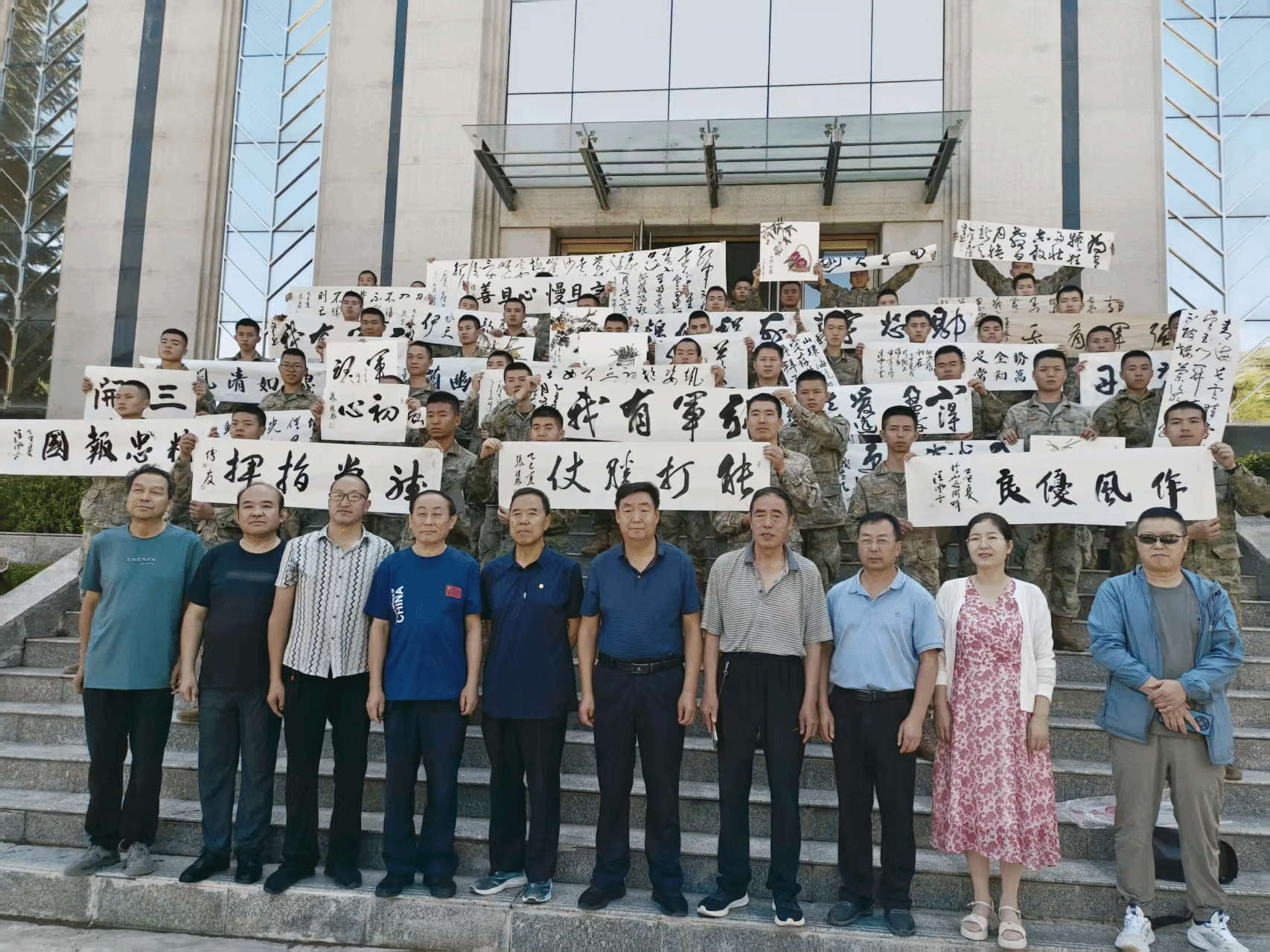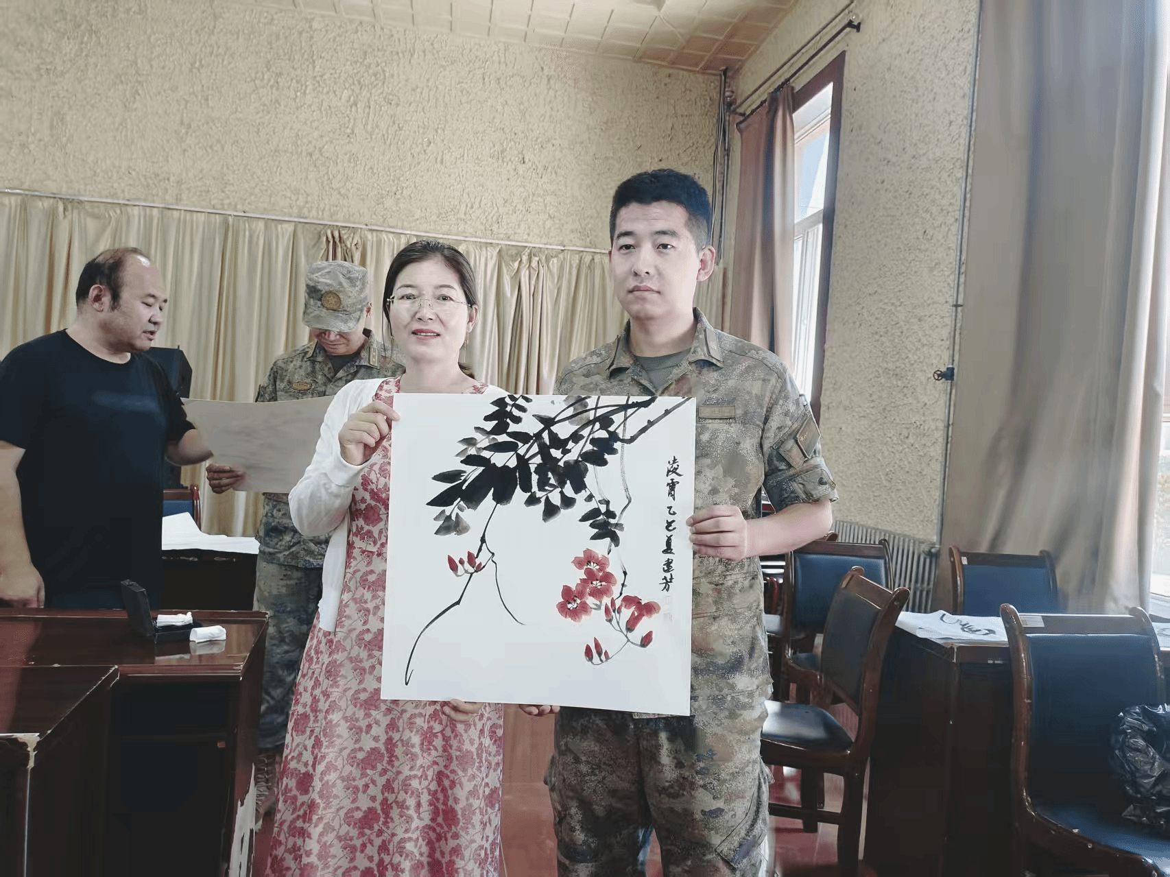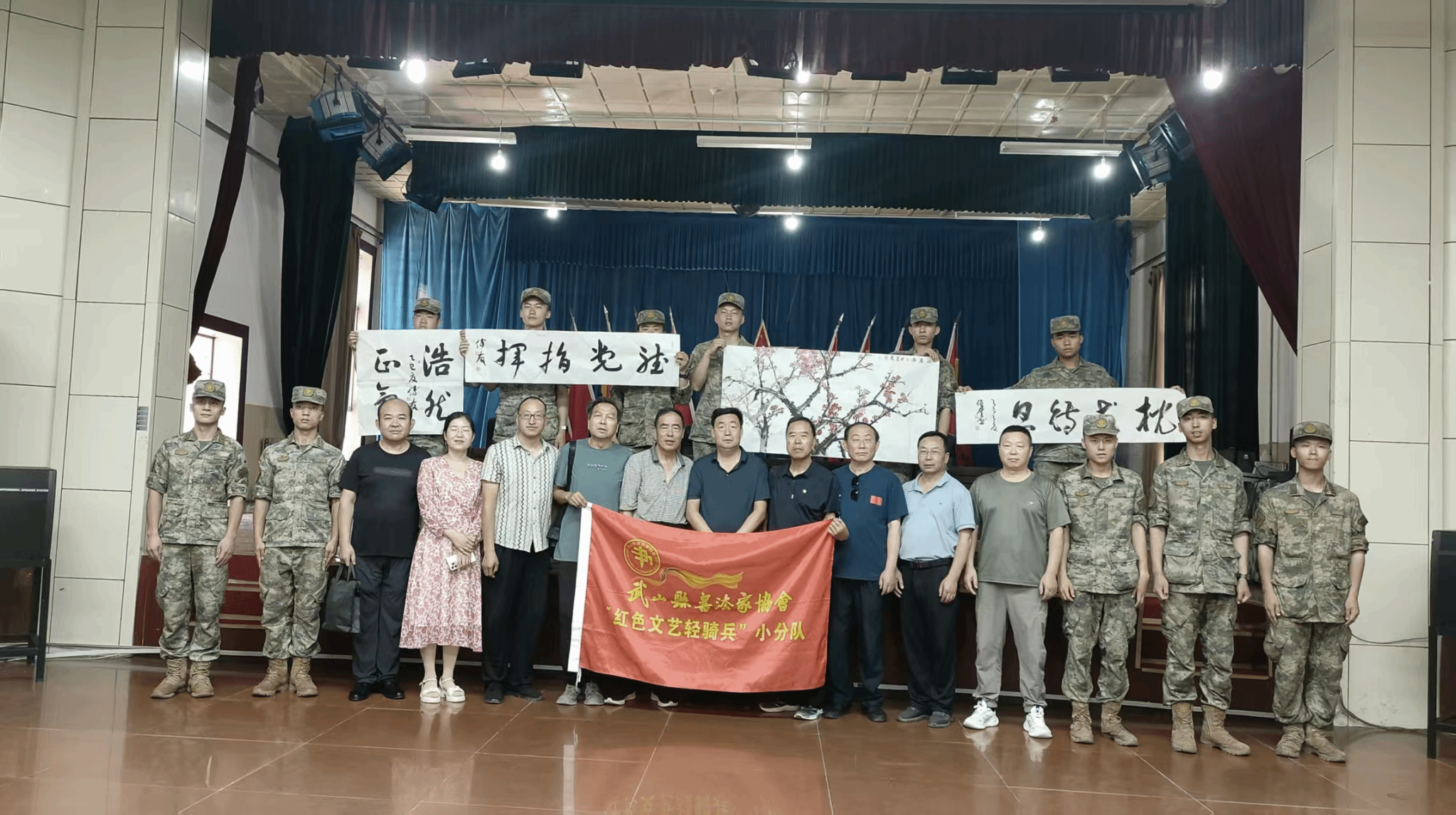 为庆祝中国人民解放军建军98周年,弘扬拥军优属光荣传统,进一步加深军民深厚情谊,7月30日,县退役军人事务局联合县文联,组织书法家协会、县美术协会部分文艺骨干走进驻县部队,举办“八一”书画进军营活动,向驻县部队官兵们致以最诚挚的祝福和问候。