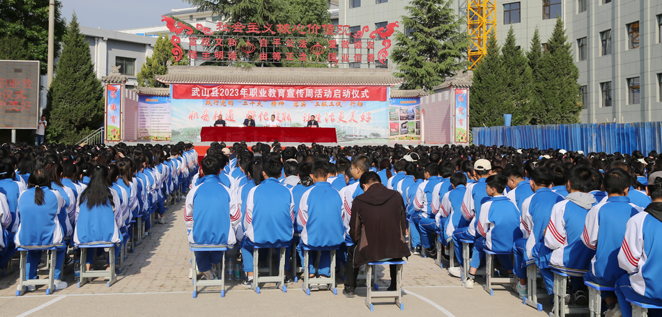 5月16日,武山县2023年职业教育周活动在县职专启动。副县长李峰出席启动仪式并讲话,县教育局负责同志及县职专全体师生共计2000余人参加启动仪式。