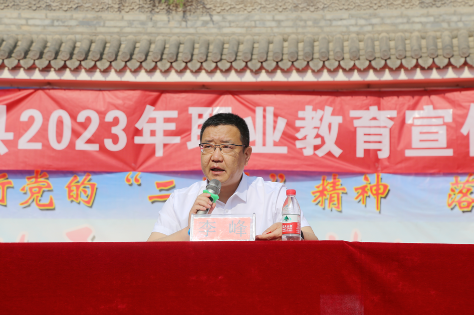 李峰强调,举办职业教育活动周,对于全方位展示我县职业教育发展成果,积极营造全社会关心支持职业教育发展的良好氛围具有重要意义。县教育部门要牢牢把握职业教育正确办学方向,抢抓政策机遇,树立战略眼光,谋实项目载体,创新工作方式,持续深化教育教学改革,全面提升中职学校标准化办学水平,推动全县职业教育高质量特色化发展。县职校要进一步健全完善产教融合办学体系,不断提升师资队伍建设水平,大力培养锻造一支师德高尚、业务精湛、结构合理、充满活力的高素质专业化教师队伍,不断提升职业教育的适应性和现代化水平。要把本次活动周办成宣传周、展示周、服务周,全面展示职业教育改革发展成果,积极营造全社会关心支持职业教育发展的良好氛围。
