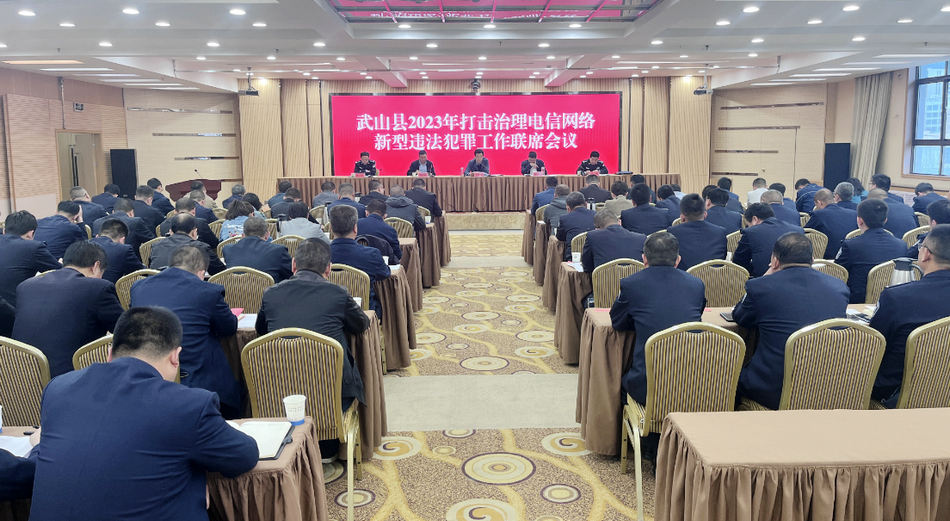 4月21日,武山县召开2023年打击治理电信网络新型违法犯罪工作联席会议,学习贯彻习近平总书记关于打击治理电信网络新型违法犯罪工作的重要指示精神,全面落实省、市打击治理电信网络新型违法犯罪工作联席会议精神,总结成绩,分析形势,安排部署全县打击治理电信网络新型违法犯罪各项重点工作任务。县委常委、政法委书记令军强出席会议并讲话,县委常委、副县长赵百祥主持会议,县打击治理电信网络新型违法犯罪工作联席会议召集人、各成员单位和驻县相关单位负责人及各乡镇分管负责人和派出所所长参加会议。