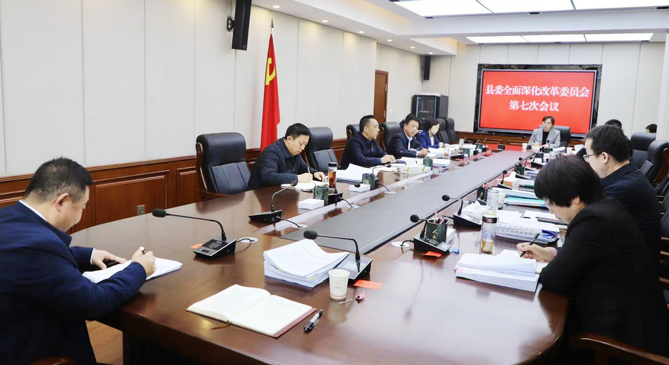 4月25日,县委书记、县委全面深化改革委员会主任王新强主持召开十五届县委全面深化改革委员会第七次会议,县领导庞明全、马福胜、王萍、李森、吴学深、王想成、凌鹏亮、宋昌华、李燕玲、刘莉娜、孟立瑞出席会议,县直相关部门负责人参加会议。