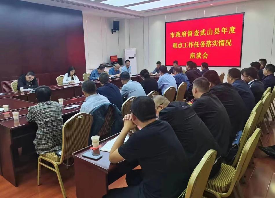 在召开的座谈会上,督查组对武山县年度重点工作任务落实情况表示充分肯定,督查组指出,武山县能够深入贯彻落实省第十四次党代会提出的“四强”行动,进一步践行“三抓三促”行动,一季度各项工作起步早、进展快,落实有力,县域经济发展取得了喜人的成绩。督查组要求,武山县要进一步提高政治站位,树牢“四个意识”,坚决贯彻落实党中央、国务院和省委、省政府重大决策部署,以及市委、市政府工作要求,确保各项重大政策措施落地见效。要密切关注主要经济指标运行情况,持续用力抓好重大产业项目招引建设,多措并举加快政府投资项目谋划推进,用足用好政府专项债券和企业债券政策,千方百计释放消费需求,努力把耽误的时间抢回来、把落下的进度补回来。要切实扛牢责任,用“钉钉子”精神做细做实各项工作,科学谋划布局,聚焦经济建设的重难点,查漏补缺,统筹安全与发展,深挖增长潜力,进一步优化营商环境,全面提升服务保障能力,严格落实扶持中小企业纾困帮扶力度政策措施,帮助中小企业稳预期、强信心、快发展。要强化督查考核,定期不定期开展督查调度,确保年初确定的各项工作目标落实落细、落地见效。