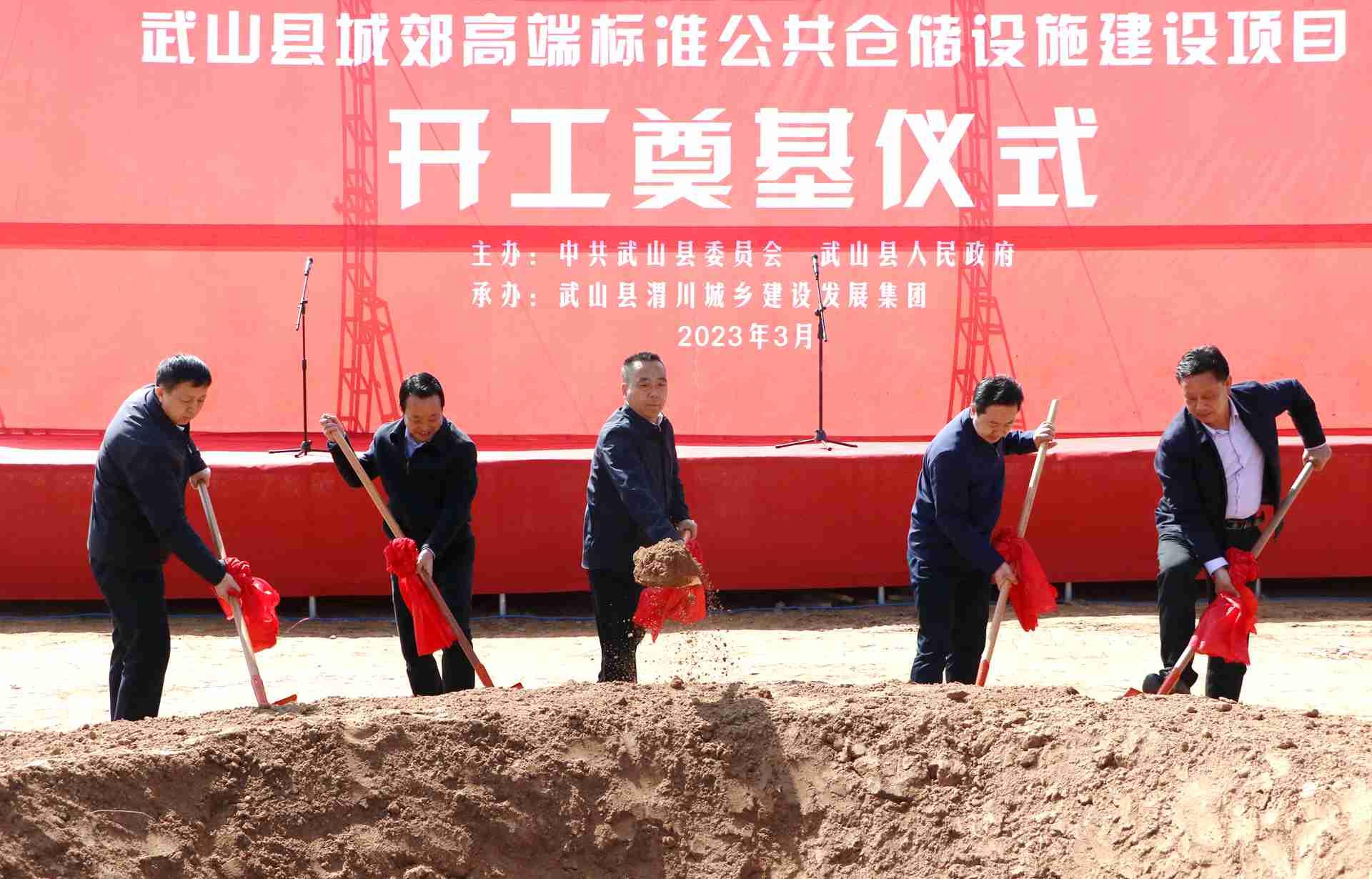 3月29日,武山县城郊高端标准公共仓储设施建设项目开工奠基仪式在县工业集中区举行。县委书记王新强出席活动并宣布项目开工;县委副书记、县长王志成主持开工仪式。