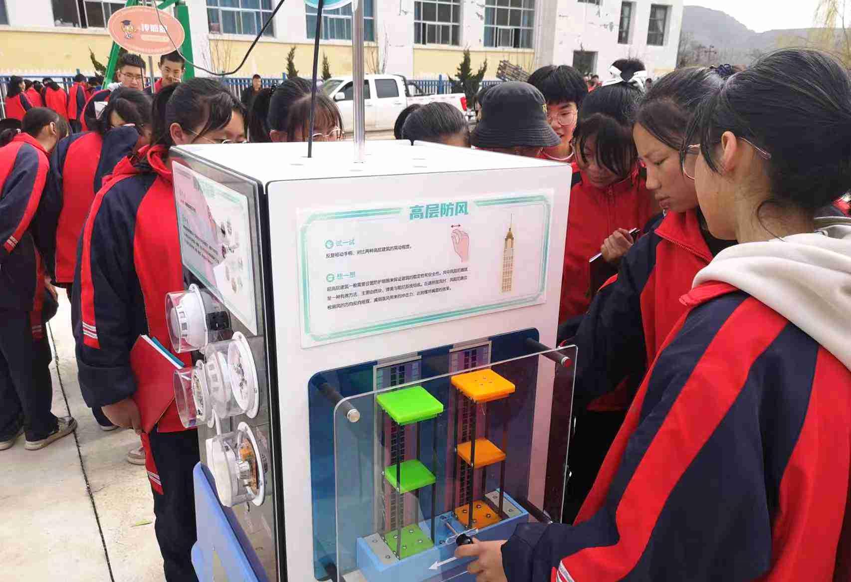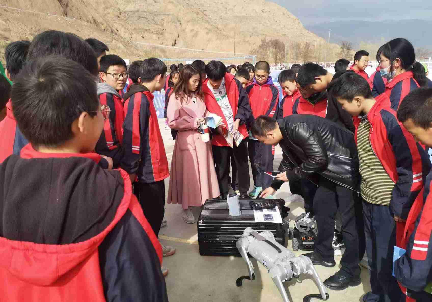 活动分为室内室外两个板块,在室外,学生们观看电子狗表演、无人机飞行、机甲机器人对战,以及体验智能生活、健康安全、机械结构等科普设备,这些展品融入了光学、力学、声学、生物学科学知识和科学原理,集知识性、趣味性、互动性为一体,让学生通过参与游戏互动的方式,学习科学知识,感受科学魅力。