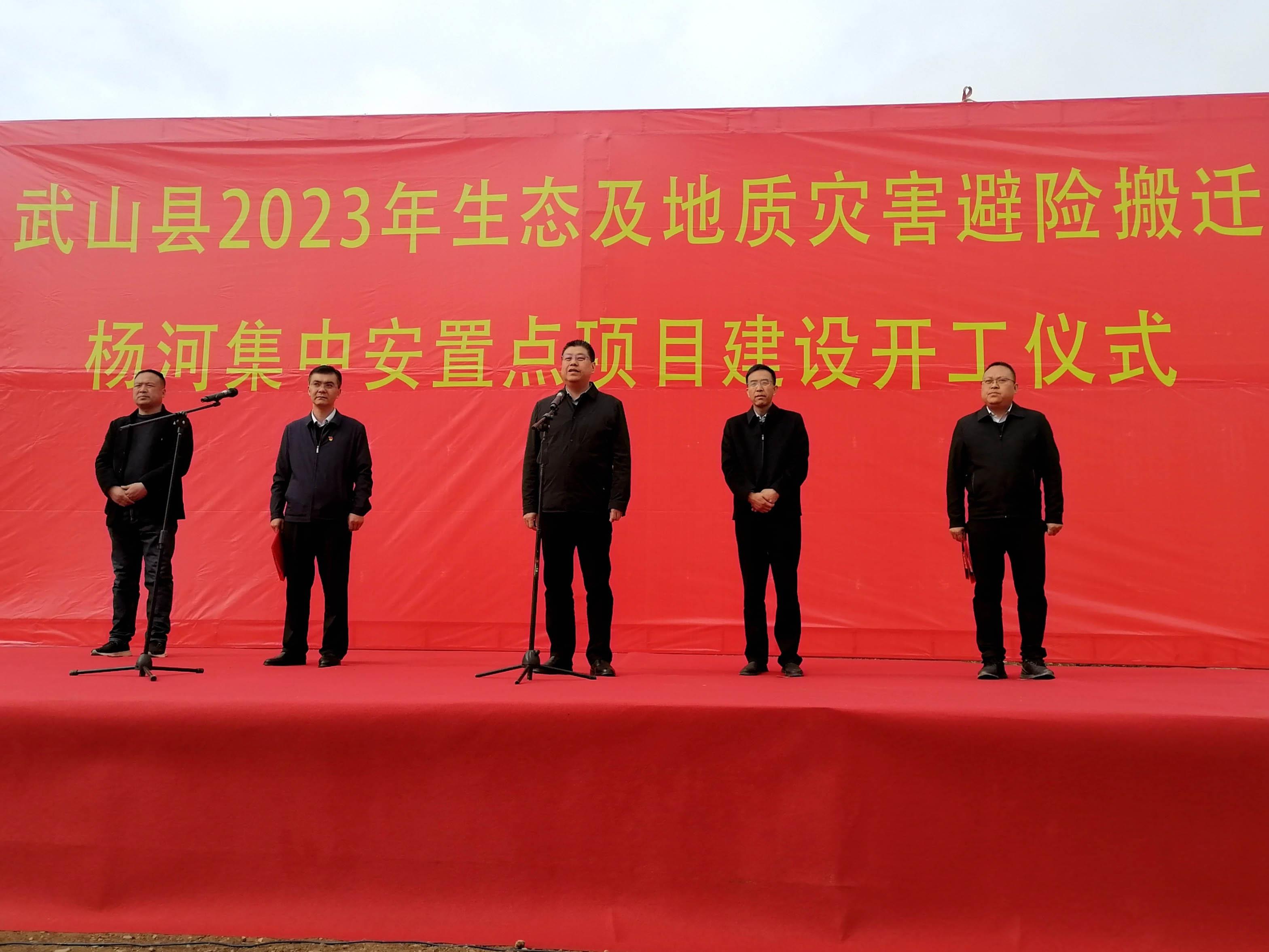 武山县融媒体中心3月20日讯(记者 彭雪)3月20日,武山县2023年生态及地质灾害避险搬迁杨河集中安置点项目建设开工仪式在杨河镇杨河新村举行。县委常委、副县长赵百祥出席仪式并宣布项目开工。县直有关部门负责人,杨河镇党政班子成员、各村党员代表、群众代表及施工方代表参加开工仪式。该项目的开工建设,标志着全县2023年生态及地质灾害避险搬迁集中安置建设项目全面开工建设。
