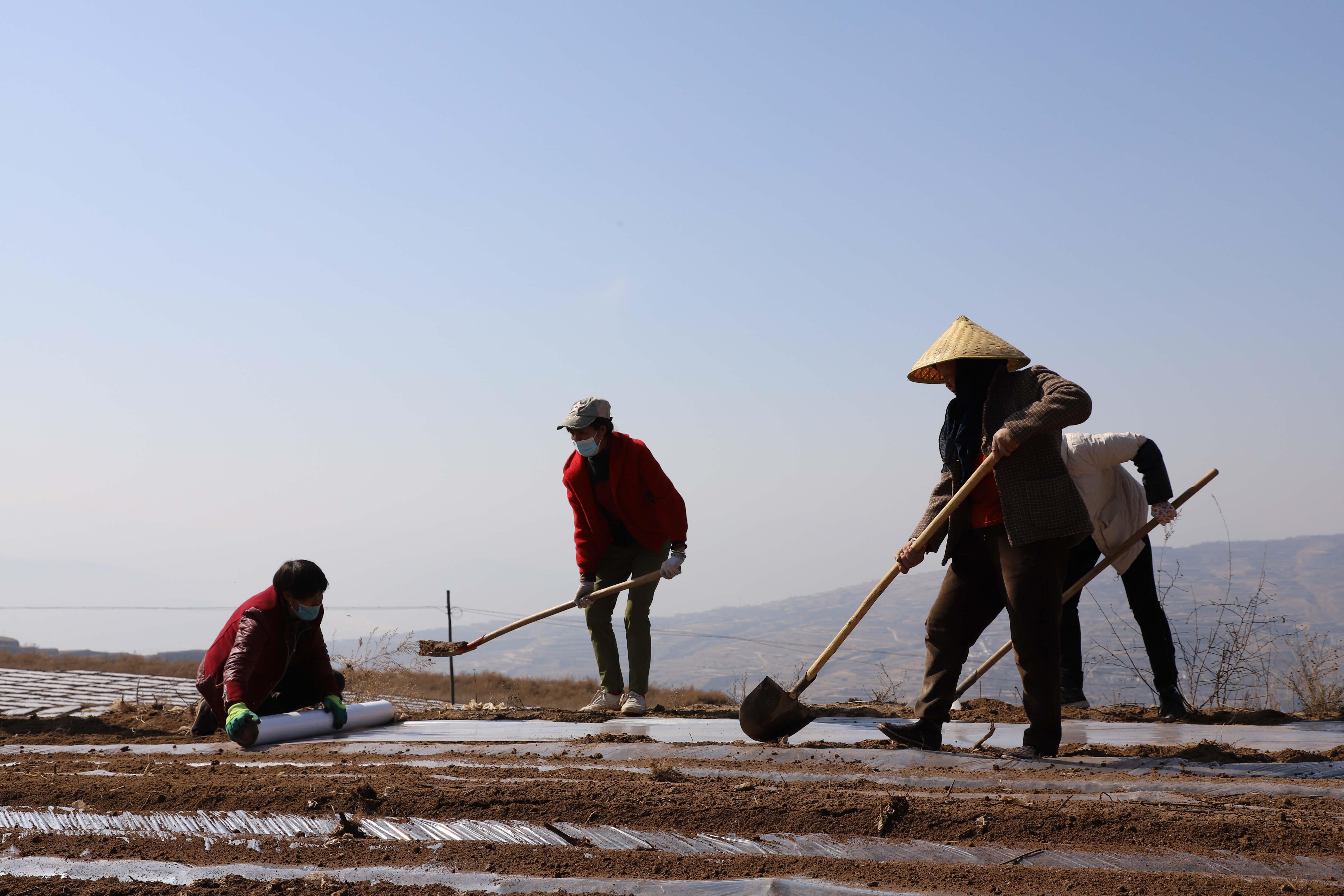 这几天,在武山县沿安乡千亩小麦种植示范基地,干部忙着带领群众对土地进行深翻,大型耕地机几个来回就将地块翻“熟”。“这片地总共有1500亩,由于冬天比较干旱,种的油菜大多旱死了。为了把这些土地有效利用起来,我们决定在这里打造1500亩的春小麦种植点,这样既挽救了群众的损失,又实现粮食增产。”李庄村驻村干部史成林介绍,经过与村民协商,该片区域以合作社为主导,进行耕种,群众只负责收获,集中耕种也能减轻群众的负担。