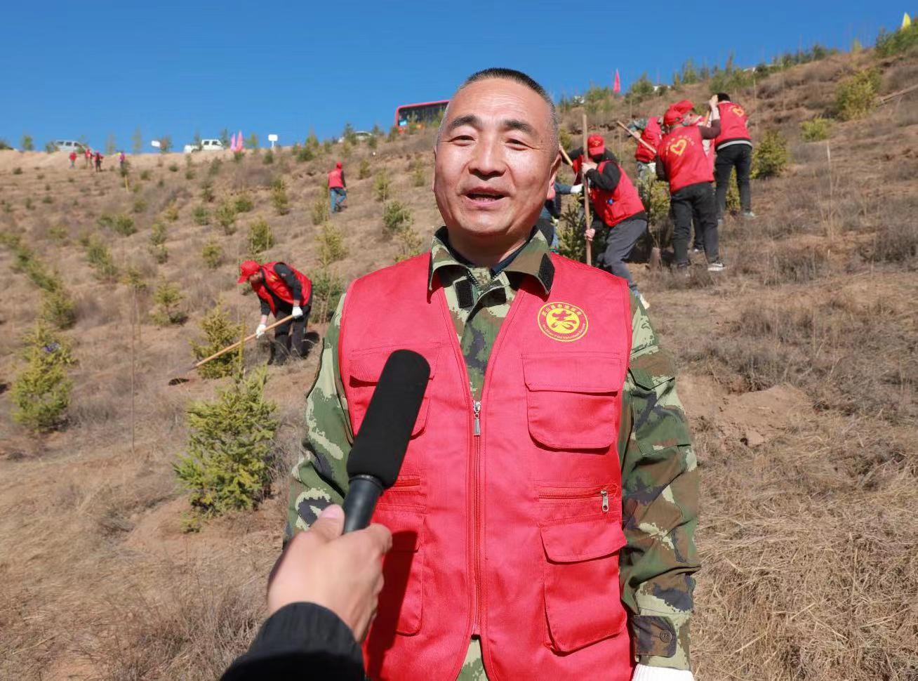 王小虎是武山县人民政府办公室的一名普通干部,今年全县义务植树活动启动后,他每天都会来到植树点参加植树活动,闲暇之余,他告诉记者,“植树造林、保护森林是公民应尽的义务,是功在当代、利在千秋的崇高事业。我们县政府办公室全体干部职工结合“三抓三促”行动,积极投身全民义务植树的热潮,深入践行习近平总书记“绿水青山就是金山银山”发展理念,为武山大地再添新绿,让生态绿色新武山“底色”更浓、“成色”更足、“本色”更亮。”