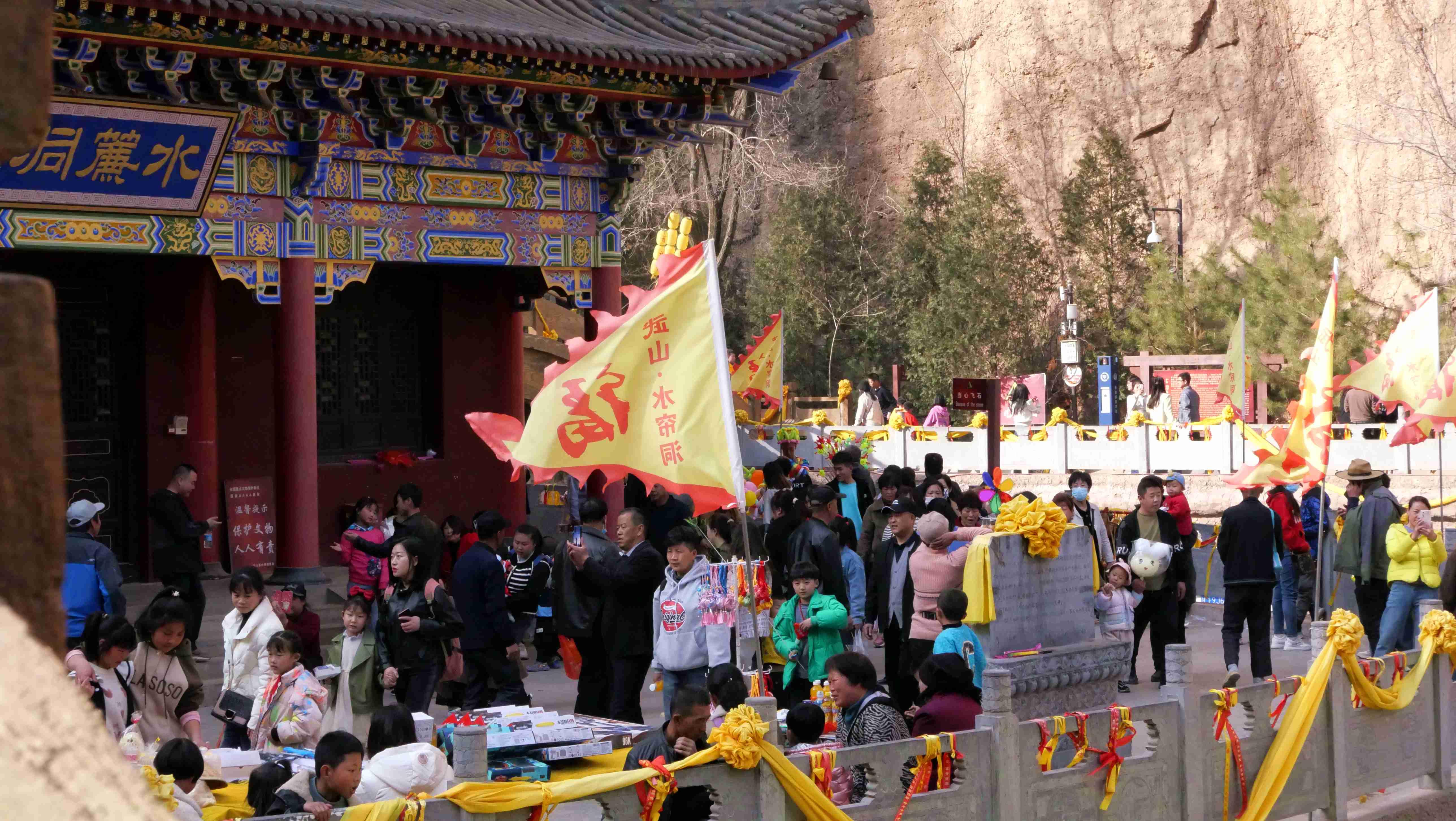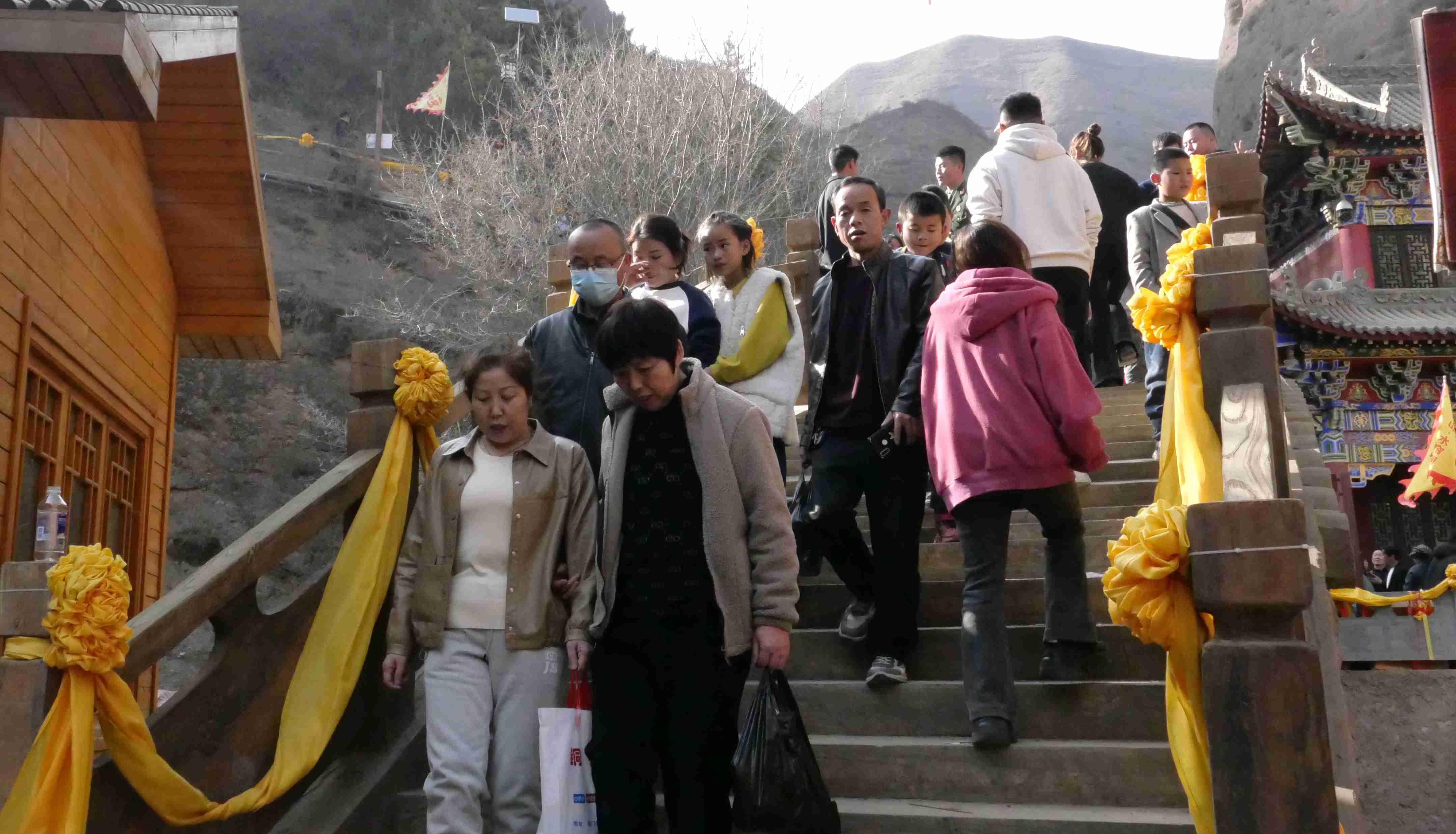3月5日,武山县水帘洞景区游人如织,热闹非凡,游客纷纷走进景区,观光旅游,祈福纳祥,感受美好春光。