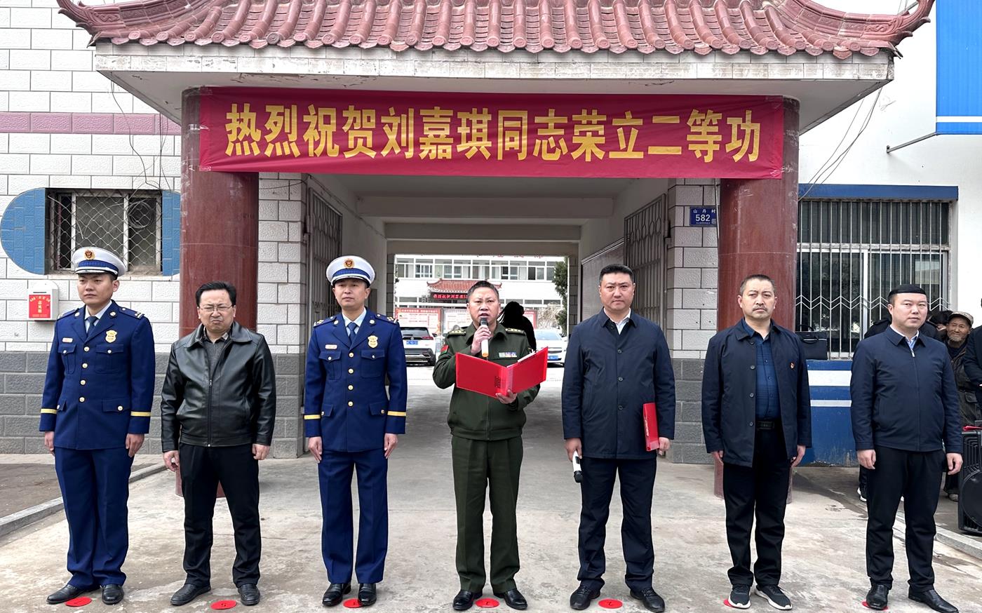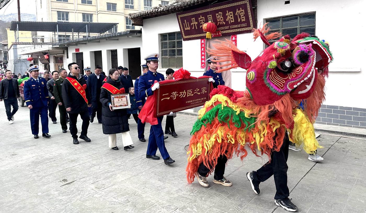 武山县融媒中心2月28日讯(记者 赵超)立功喜报送到家,尊崇荣光暖人心。2月28日,县委常委、县人武部政委梁兴卫,副县长、县公安局局长温阿军带领县退役军人事务局、应急管理局、县消防救援大队等相关部门负责人,与专程前来送喜报的四川省森林消防总队甘孜支队乡城大队负责人来到山丹镇山丹村为荣立二等功的消防员刘嘉琪家属送去喜报。