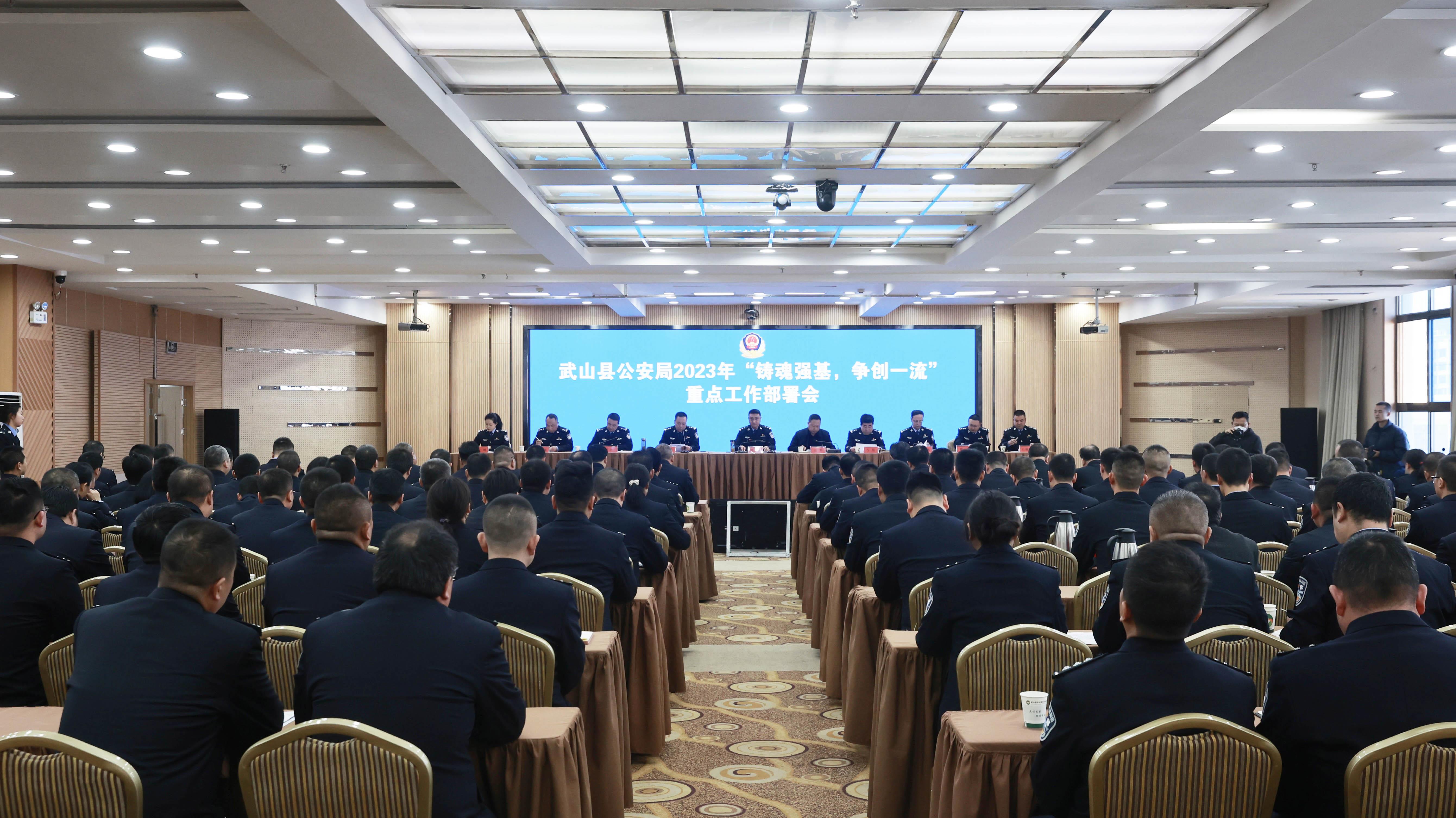 会议要求,2023年,全县公安机关要坚持以习近平新时代中国特色社会主义思想为指导,全面贯彻落实党的二十大精神,聚焦省公安厅“一统三体系,四抓两保障”工作思路和“四个一流”工作要求,锚定市局党委奋斗目标,围绕县委、县政府中心工作,持续深化“铸魂强基,争创一流”行动,按照“围绕一个中心,锚定三项任务,打造三个品牌,强化五个意识,持续六个深化”的工作思路,聚焦更高目标、凝聚更大力量,奋力推动武山公安工作在新的一年行稳致远、争创一流。