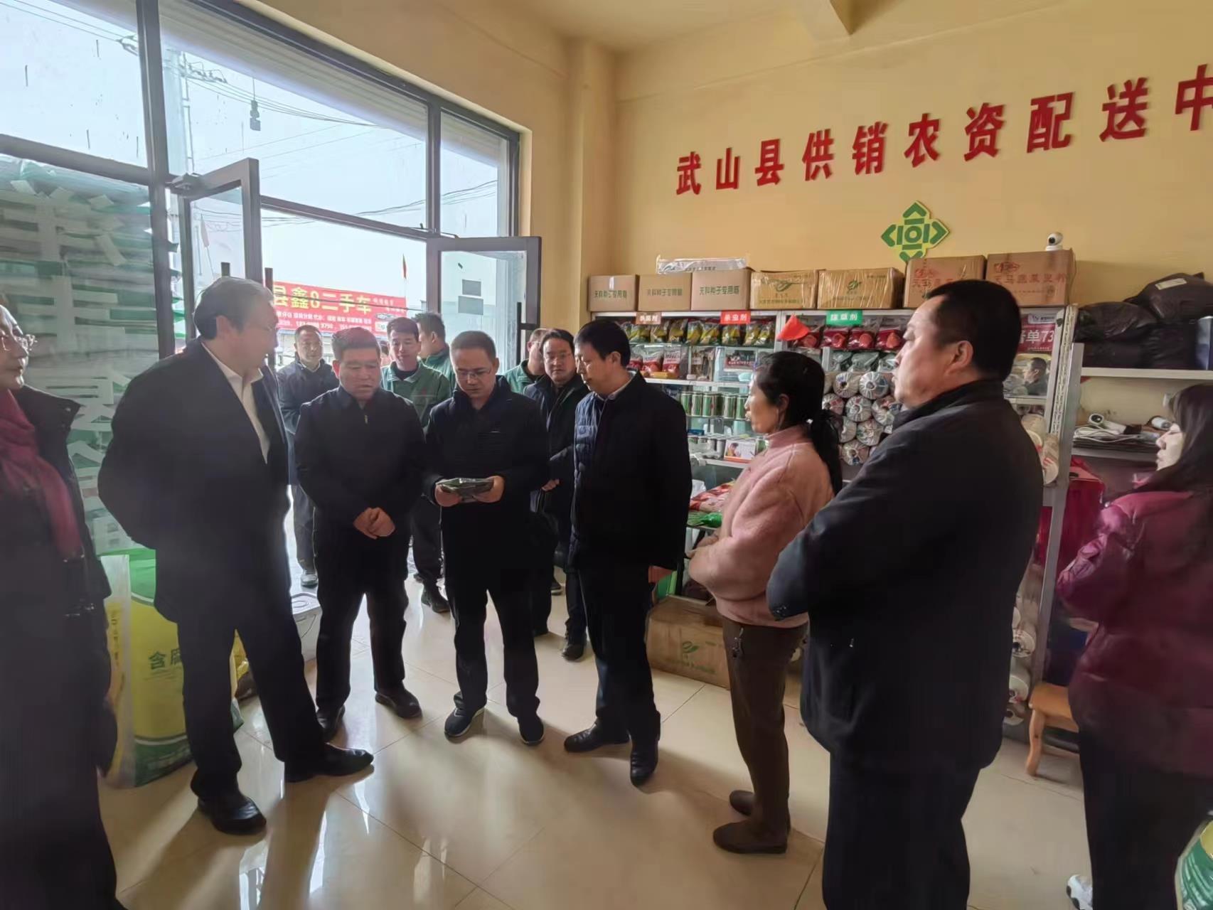 张瑞峰一行先后到洛门镇供销合作社、武山县郭庄村供销社,武山县供销惠农服务中心开展调研活动,详细了解了武山县春耕农资储备及基层供销社服务三农工作开展情况,以及基层社的运作模式、经营服务情况。