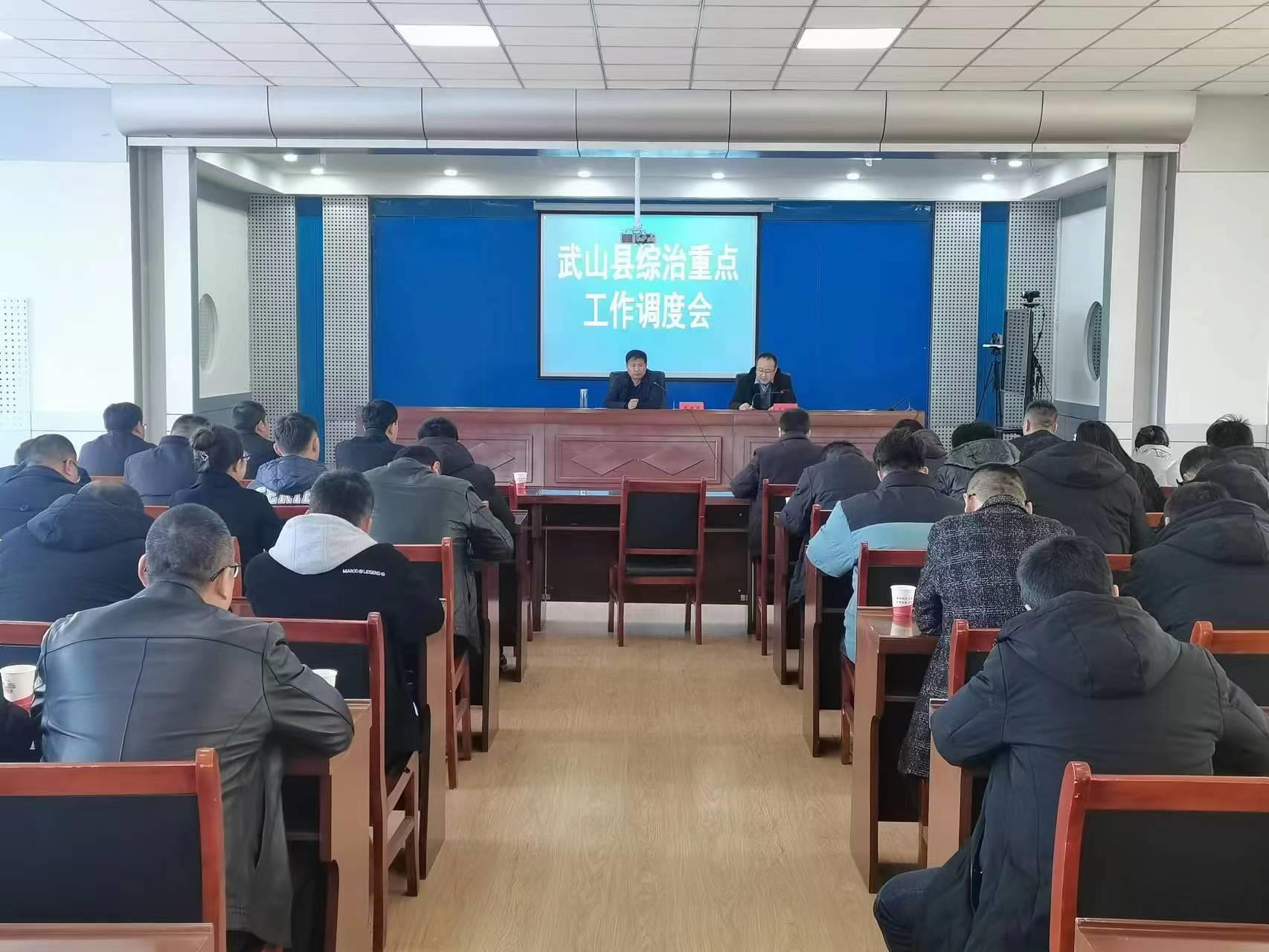 为贯彻落实全市综治系统重点工作视频调度会会议精神,2月20日,武山县召开综治重点工作调度会议,15个乡镇政法委员、综治中心主任、综治干事和县综治中心全体干部参加会议。