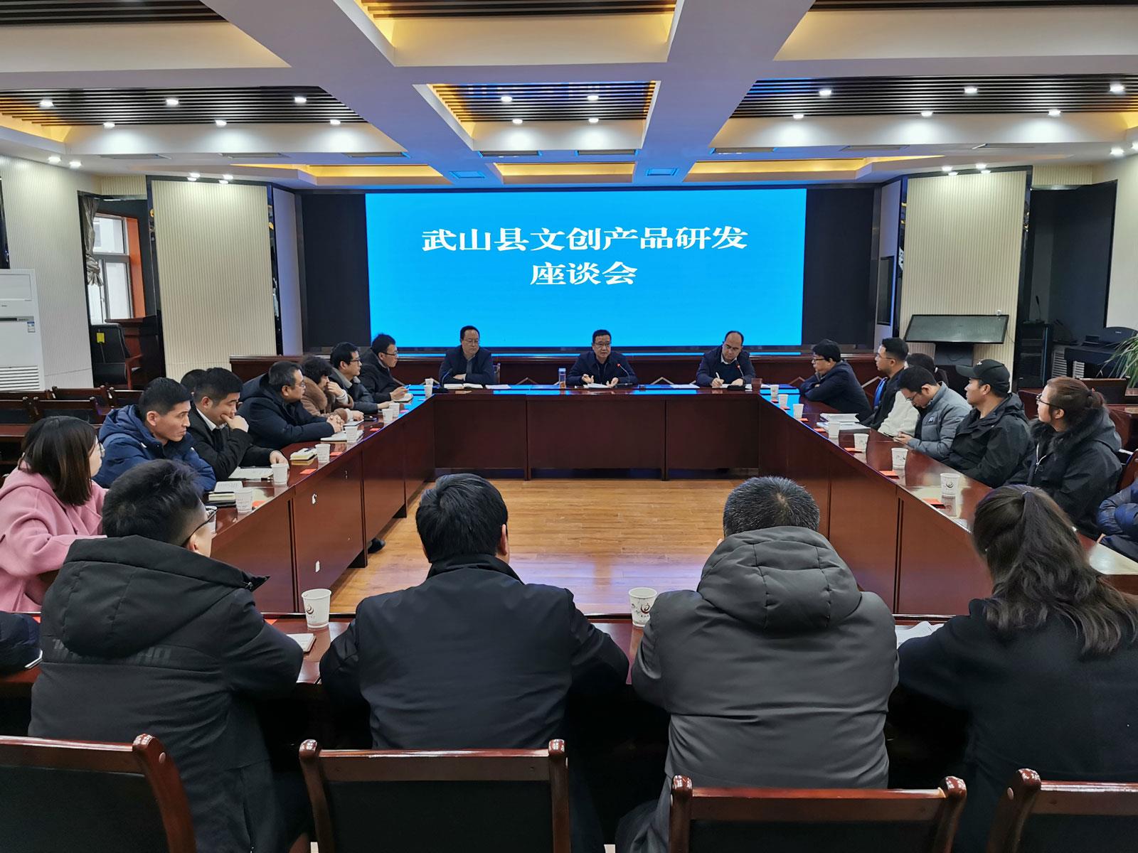 武山县融媒体中心2月16日(记者 董世雄)2月15日,武山县召开文创产品研发座谈会,副县长李峰出席会议并讲话,县直相关部门、乡镇、文创企业代表和非遗传承人代表共30人参加会议。