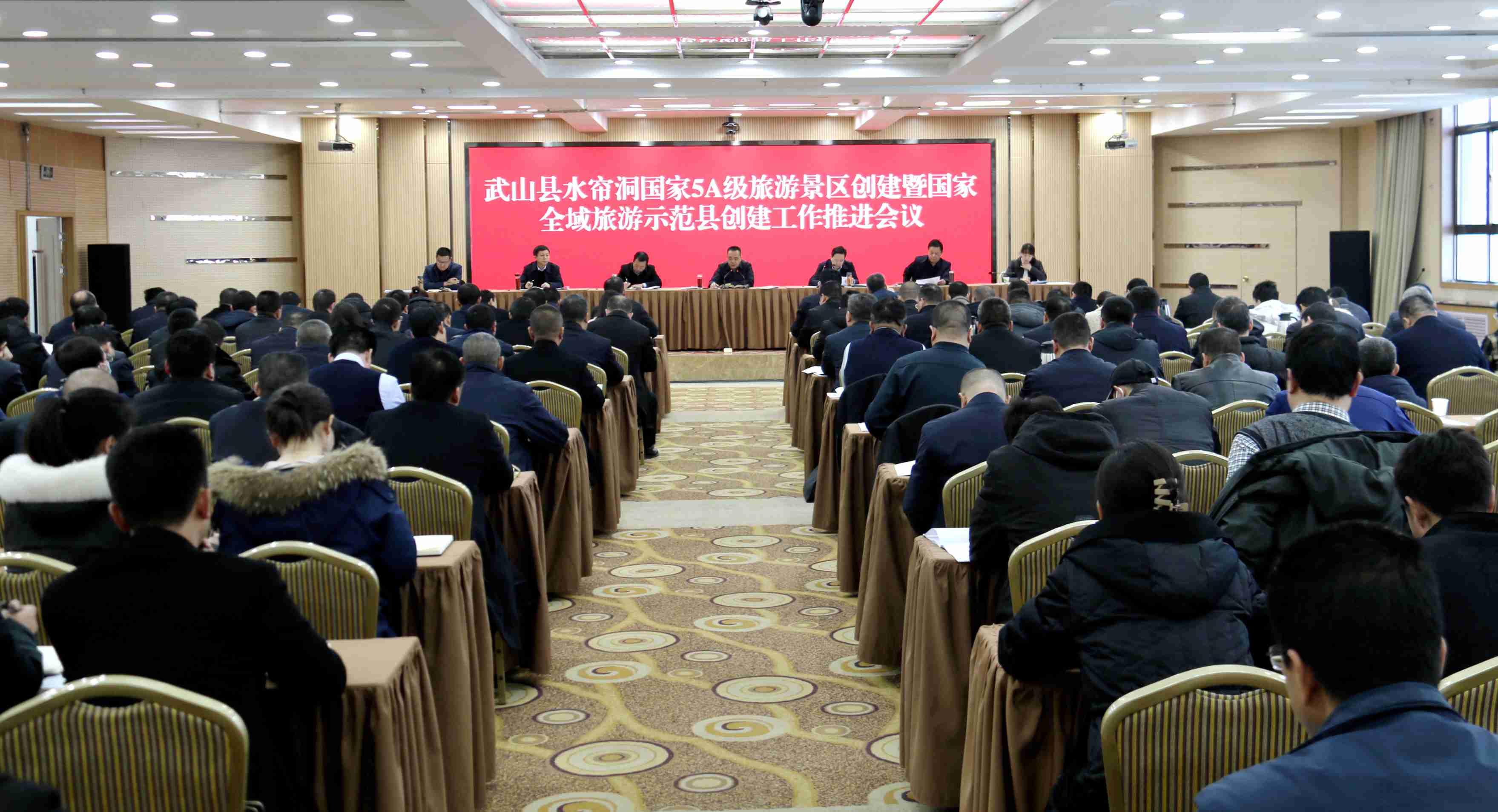 2月14日,武山县召开水帘洞国家5A级旅游景区创建暨国家全域旅游示范县创建工作推进会议,安排部署水帘洞国家5A级旅游景区和国家全域旅游示范县创建工作。县委书记王新强出席并讲话,县委副书记、县长王志成主持会议。县人大常委会主任孙德银、县政协主席庞明全,县四大组织其他在家领导,各乡镇党委书记或乡镇长,县直相关部门及驻县有关单位、武山商会、文旅行业协会和有关企业负责人参加会议。