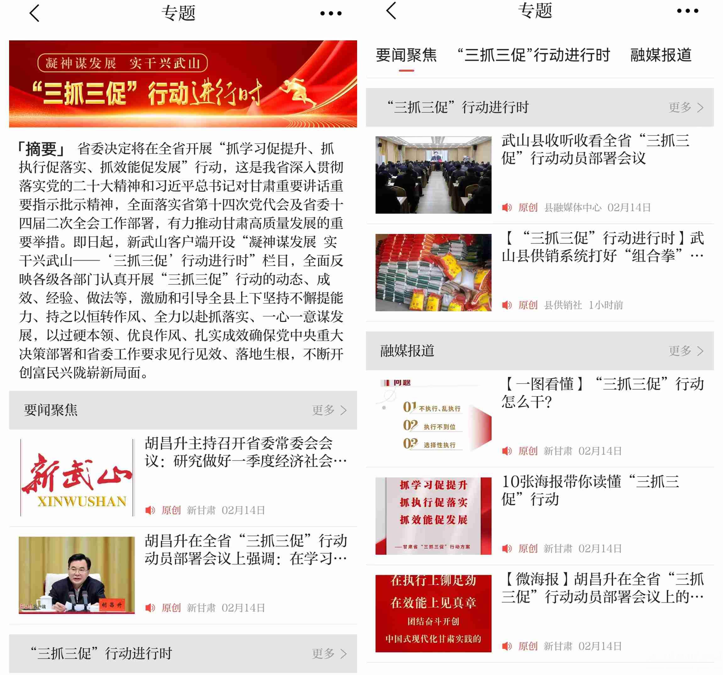 “开展‘三抓三促’行动是使命所系、群众所盼、发展所需。作为宣传部门,我们要学习好、宣传好这次会议精神,开设专栏宣传报道全县开展活动的情况。”武山县融媒体中心党组书记、主任关招宏说,“另一方面,我们要按照会议精神,寻找差距,查漏补缺,按照既定的目标集聚势能、奋力奔跑,争取武山融媒各项工作实现质的跨越。”