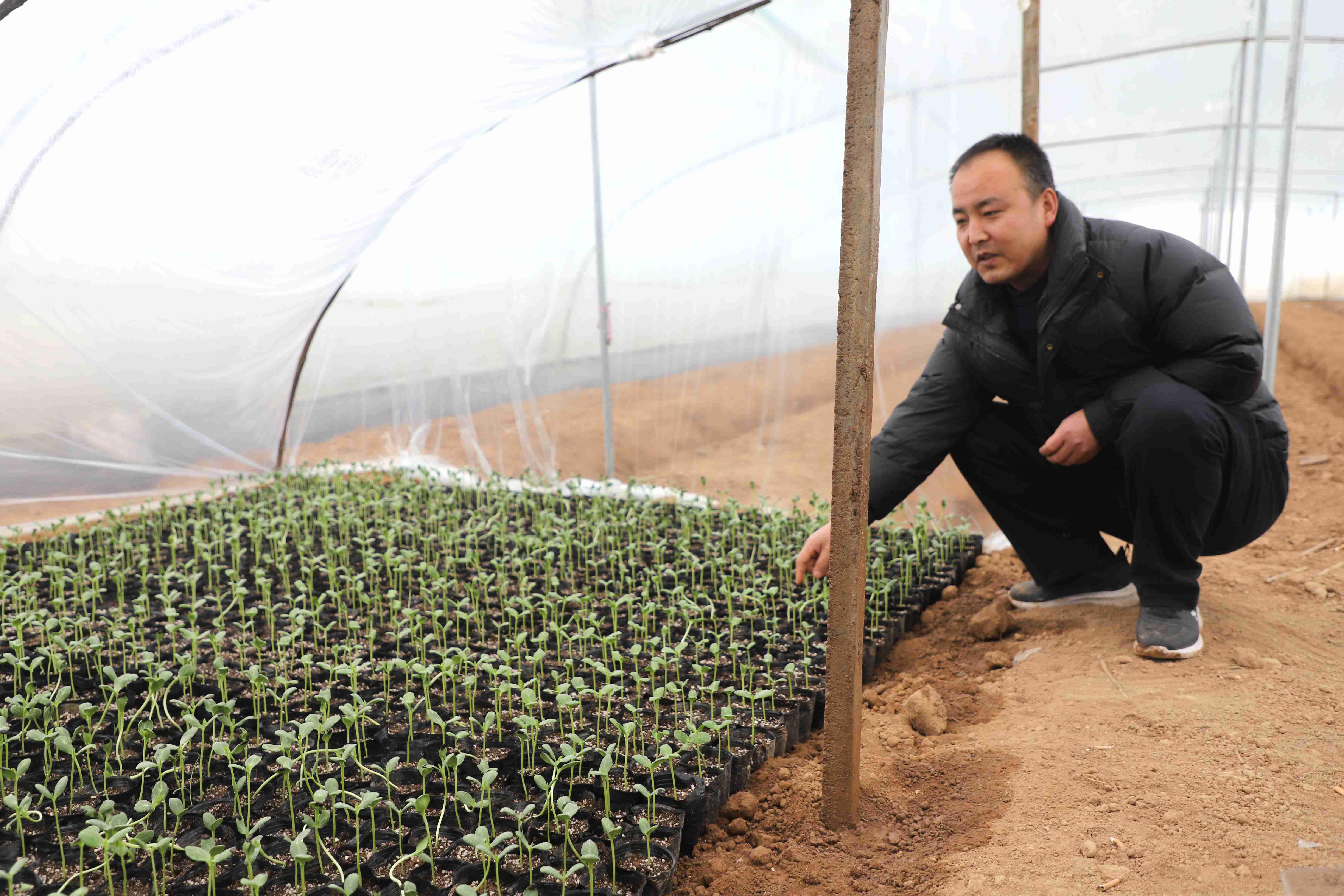在城关镇清池村,记者看到,借着这场春雪,乡亲们鼓足了干劲,为春耕备耕生产打基础。“我们这块苗子有两个品种,一个是特枣红,从东北引进过来的品种,一个是豫艺,从河南引进过来的。特枣红是红瓤的,豫艺是黄瓤的。”武山县丰裕种植专业合作社负责人韩卫介绍,“西瓜苗培育已经有十天左右了,预计再有半个月就可以移栽了。”