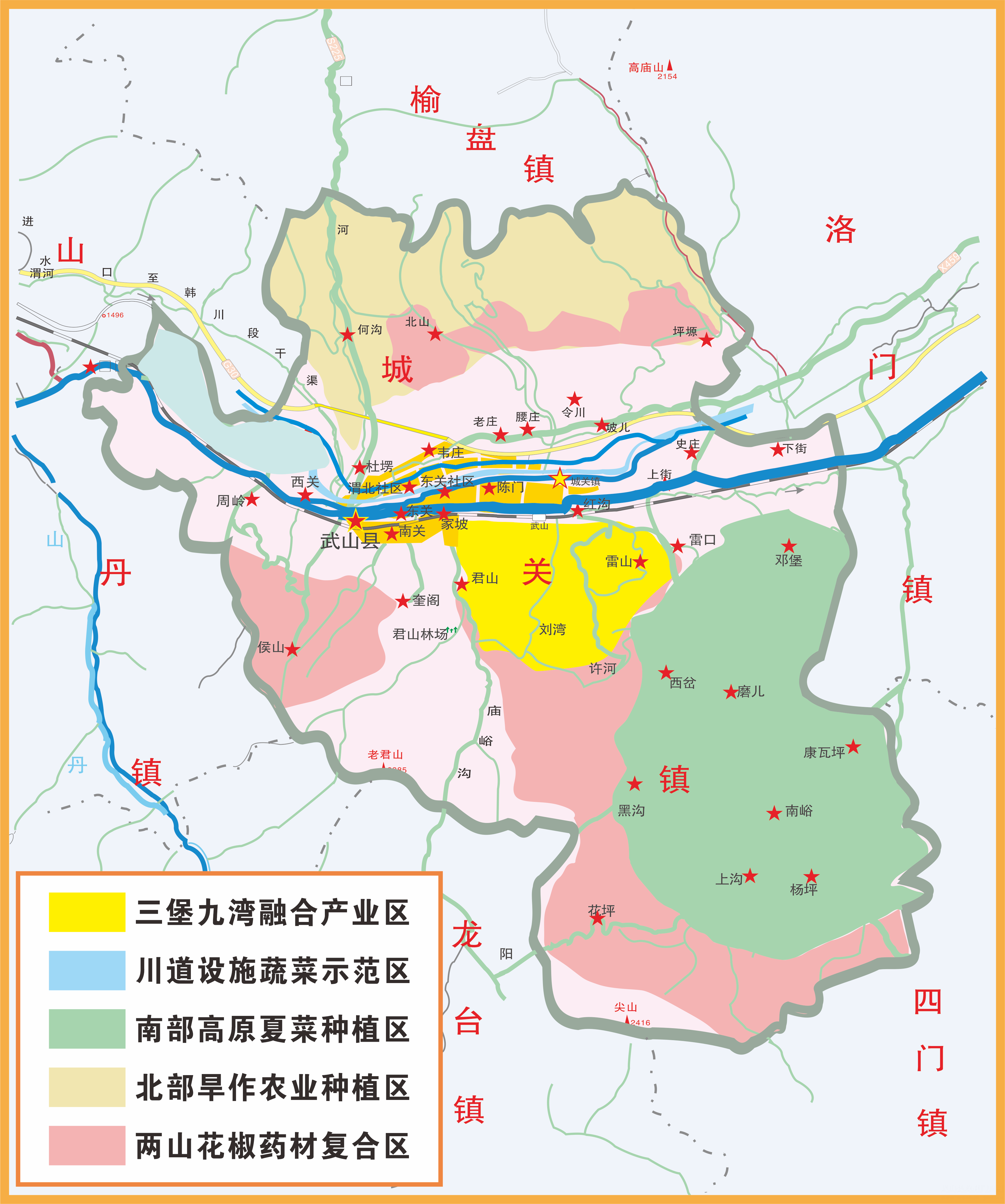 提出“三堡九湾融合产业区、川道设施蔬菜示范区、南部高原夏菜种植区、北部旱作农业种植区、两山花椒药材复合区”产业发展思路,围绕“五大片区”产业格局,整治撂荒地7300余亩,完成种植设施蔬菜1.5万余亩、架豆7000余亩、油菜3500多亩、中药材4000余亩、樱桃园300多亩,引导农户参保豆角、玉米等农业保险9900亩。