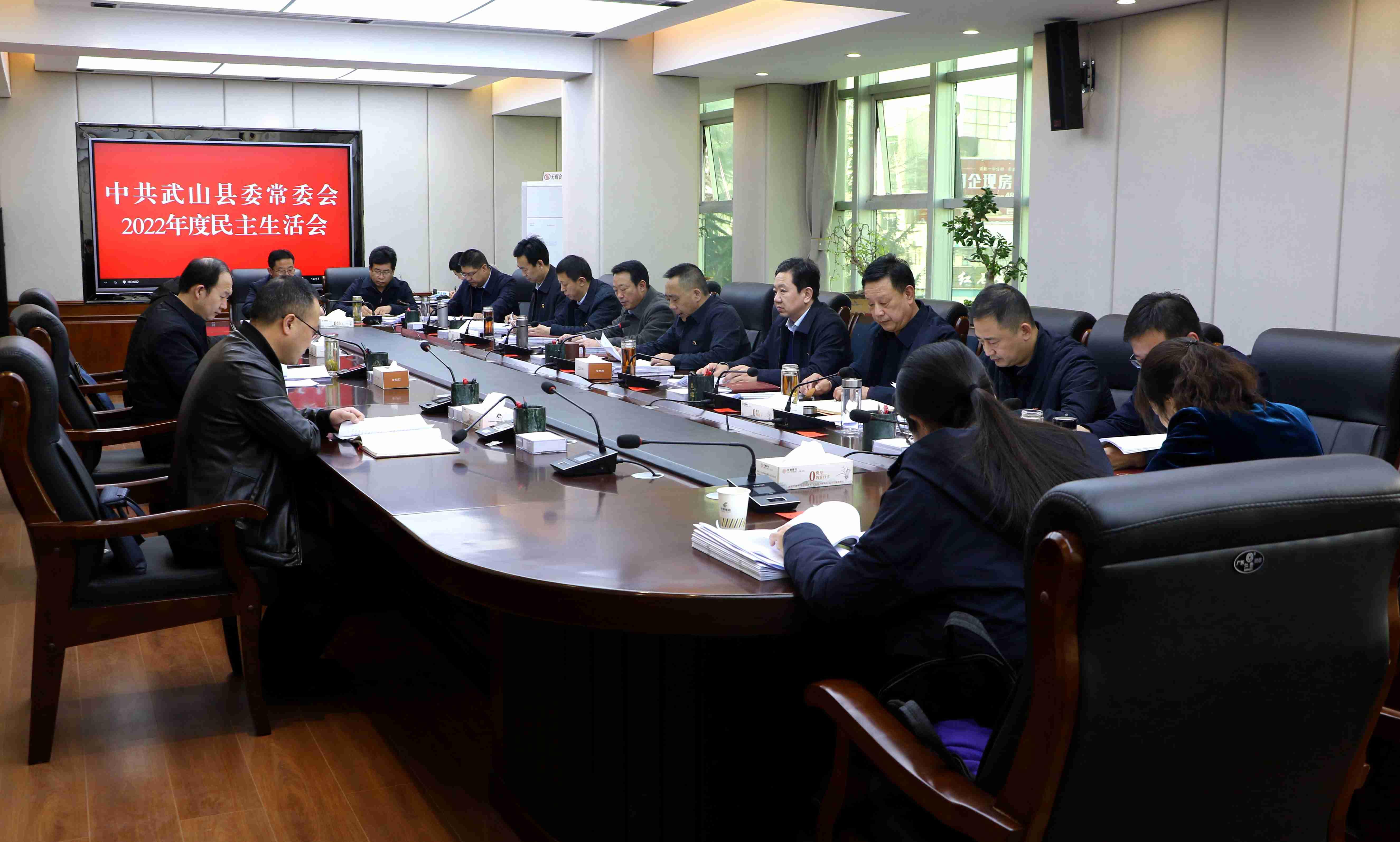 根据中央和省、市委统一部署,2月6日,中共武山县委常委会召开2022年度民主生活会。会议聚焦“全面贯彻习近平新时代中国特色社会主义思想,深刻领悟‘两个确立’的决定性意义,增强‘四个意识’、坚定‘四个自信’、做到‘两个维护’,团结带领党员干部群众以奋发有为的精神贯彻落实党的二十大作出的重大决策部署”这一主题,联系县委常委会工作,联系个人思想和工作实际,提高认识,查找不足,进行党性分析,开展批评和自我批评。