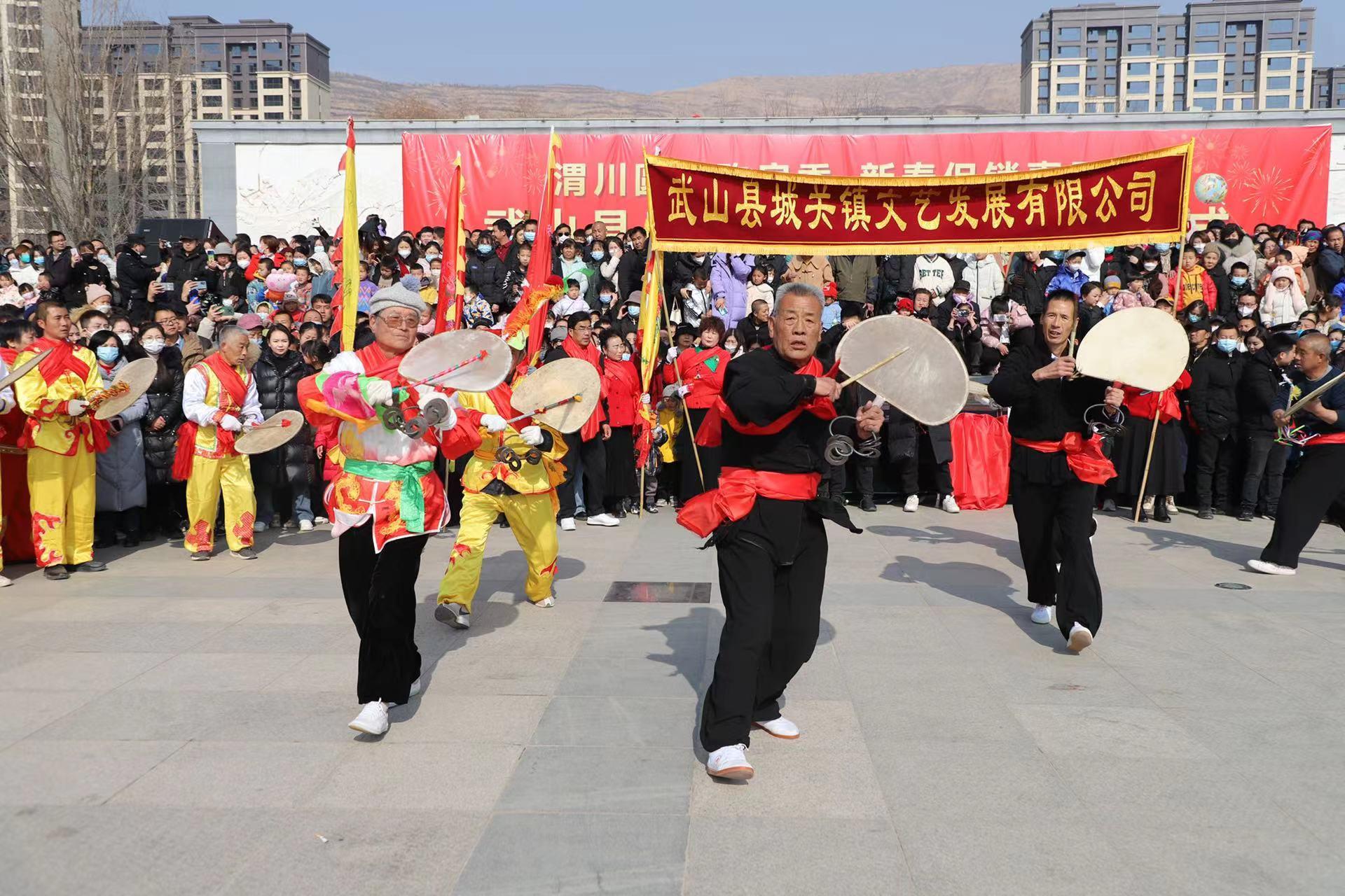 展演现场,秧歌队员身着喜庆艳丽的服装,头戴各式喜庆头饰,手拿彩扇,腰系彩带,在鼓点的敲击下翩翩起舞,用动感的舞姿、灿烂的笑容、别具匠心的节目为现场观众送上了一场充满春意与祝福的视听大餐。表演队员个个精神抖擞,意气风发,那矫健的步伐扭出了新时代群众欢乐喜庆的生活景象和健康文明、积极向上的精气神,充分展现了全县干部群众踔厉奋发、砥砺前行、真抓实干的精神风貌和奋力推进建设幸福美好新武山的坚强决心和坚定信心。