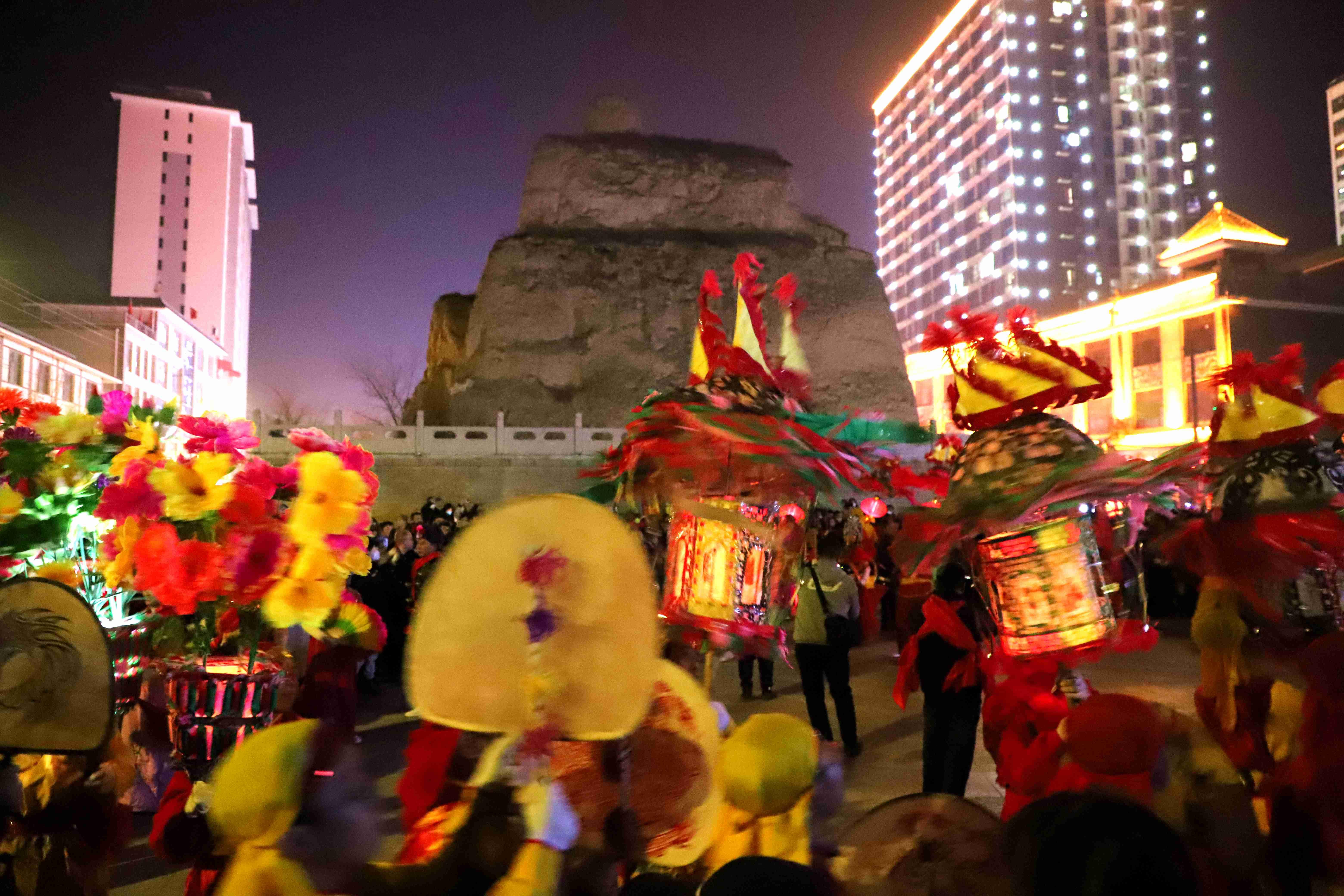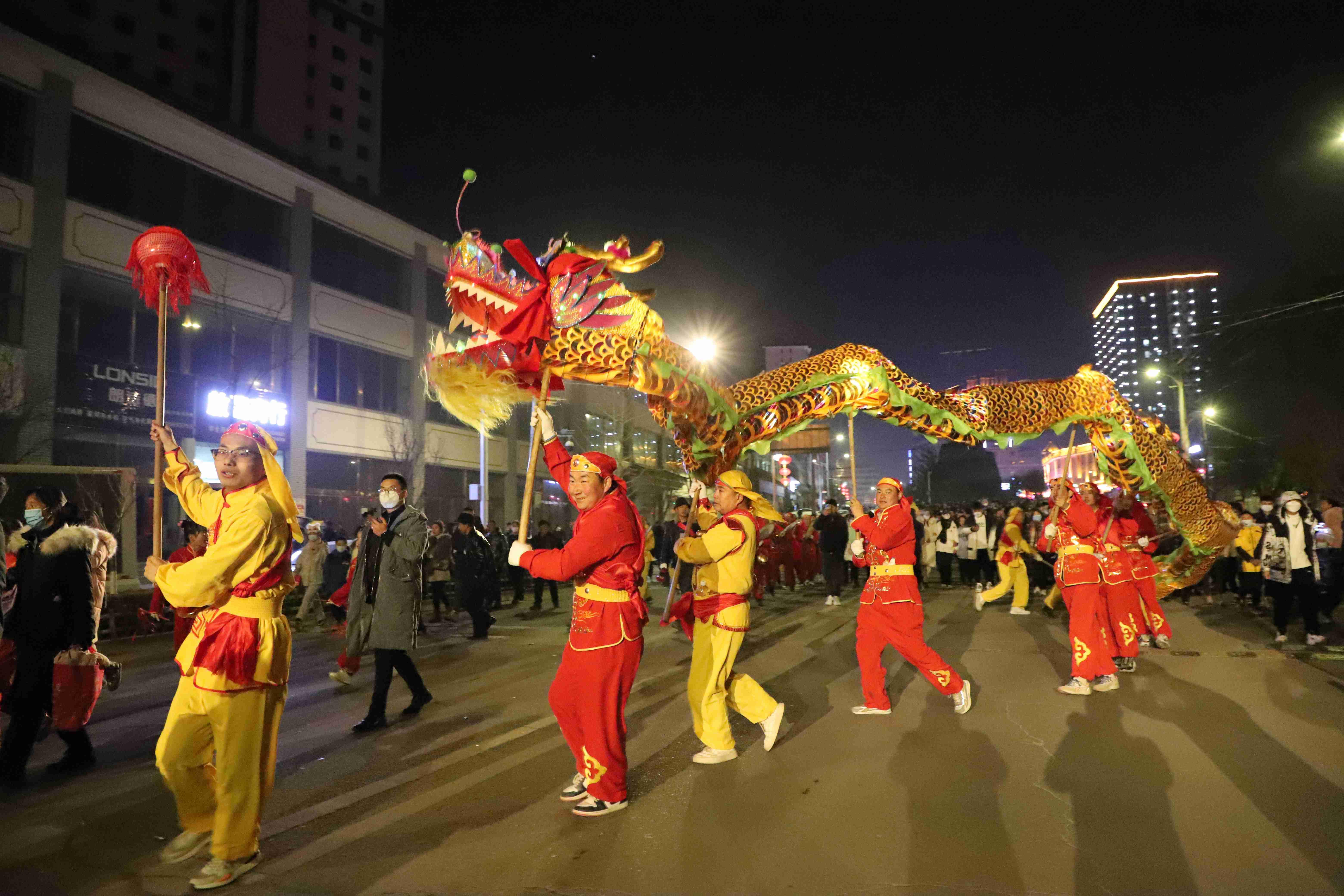 1月30日,农历正月初九晚,武山县城锣鼓喧天,人声鼎沸,分外喜庆,来自滩歌镇野峪村的祈福夜秧歌表演队走进县城,在宁远广场、风云雷雨坛广场和县文旅局、融媒体中心机关大院通过丰富多彩的祈福夜秧歌表演向全县人民拜年。