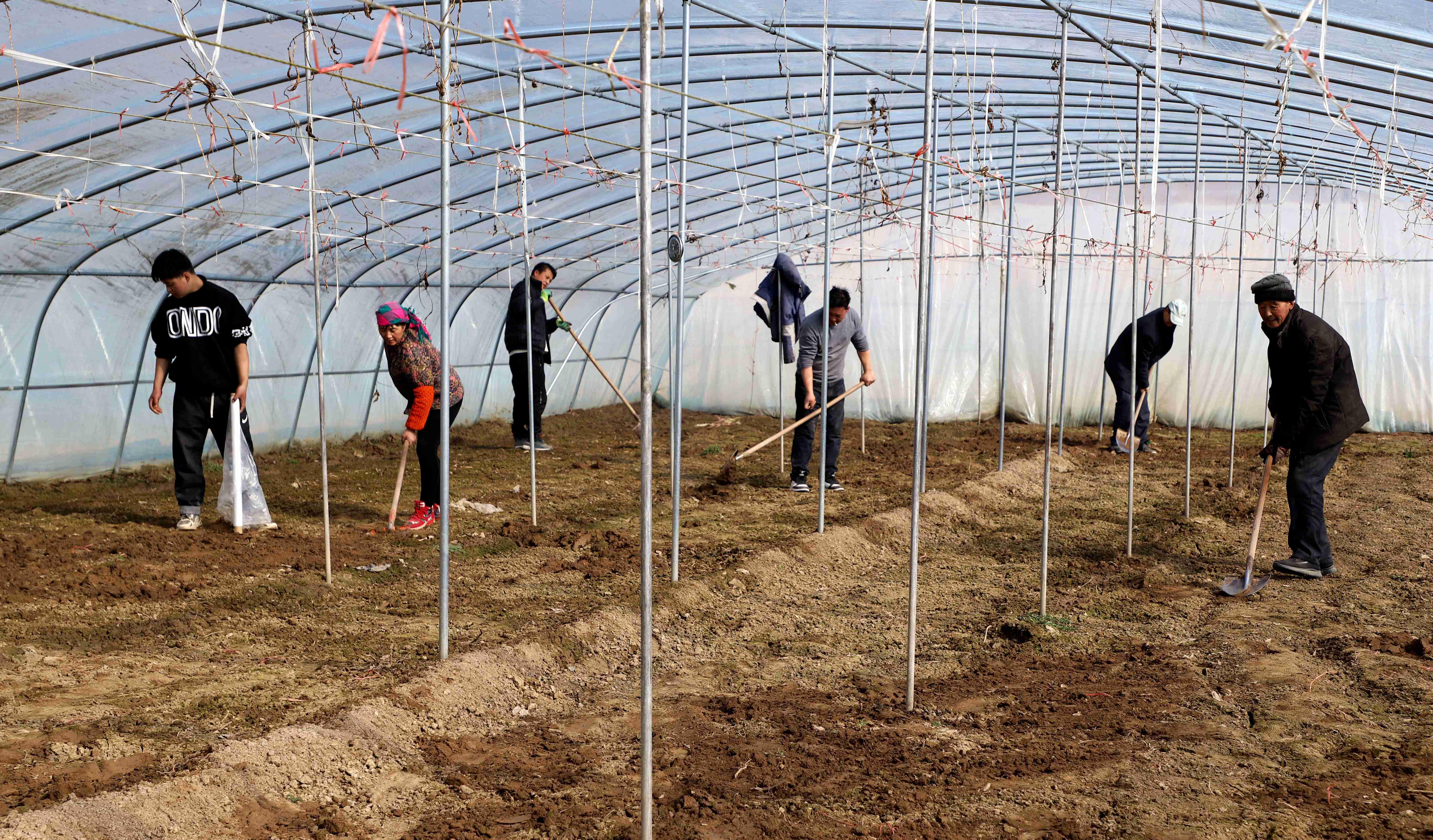 压膜,翻土,开垄,鸳鸯镇盘古村沿河的农田地里,人们忙碌有序地整理着钢架大棚。“春节接近尾声,基本上春耕就开始了。最近天气好,培育的辣椒苗子已经长了十多公分,平整地、施肥、铺膜后就能栽了。”武山县大娃蔬菜种植专业合作社负责人王双红告诉记者,合作社的钢架大棚将会种植辣椒、豆角、扁豆等经济作物,“等到丰收的时候又是一番好光景”。