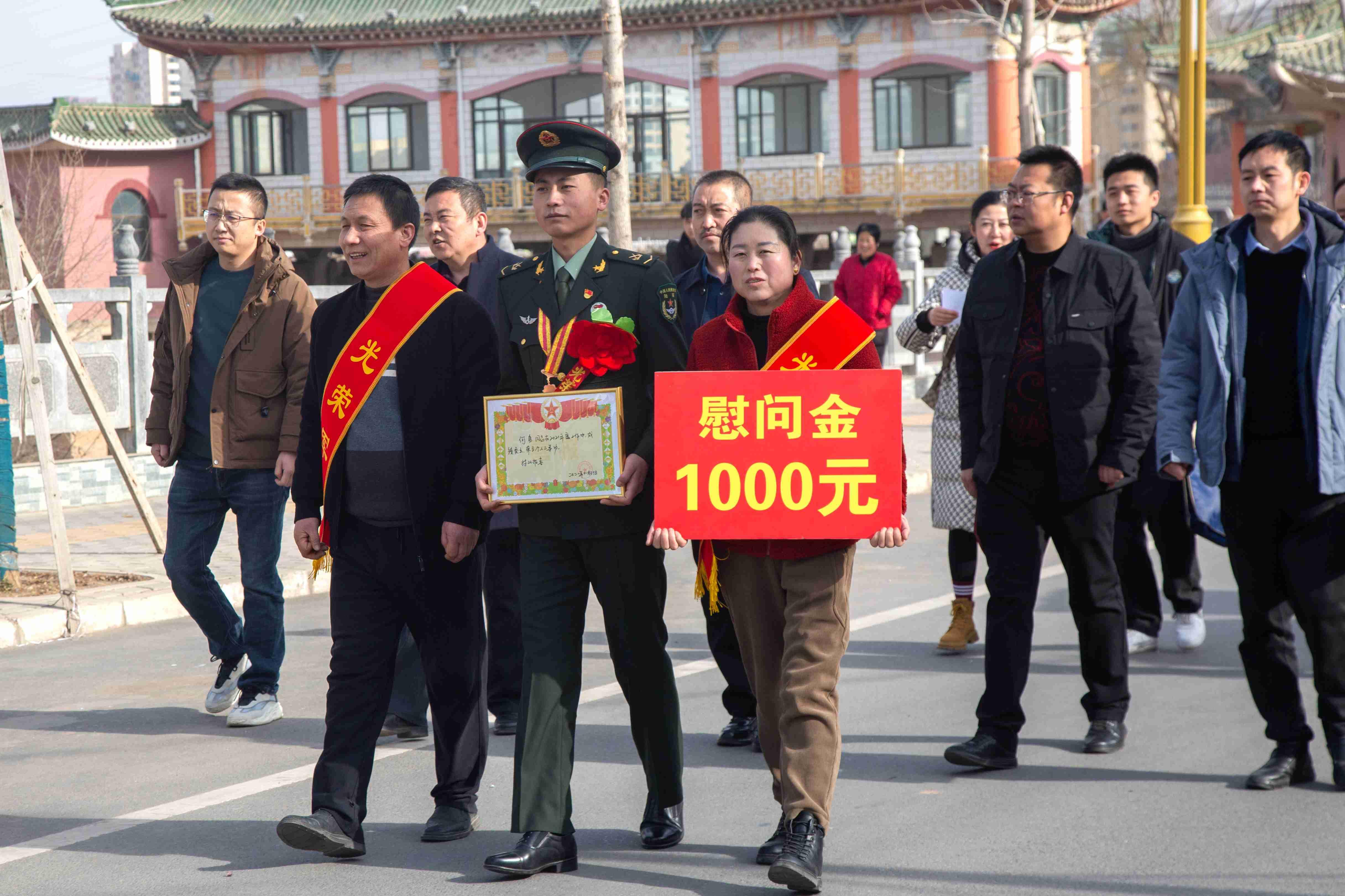 在喜庆的节日气氛中,1月28日,现役军人何勇及其家属收到了县退役军人事务局和城关镇负责人送来的立功喜报。