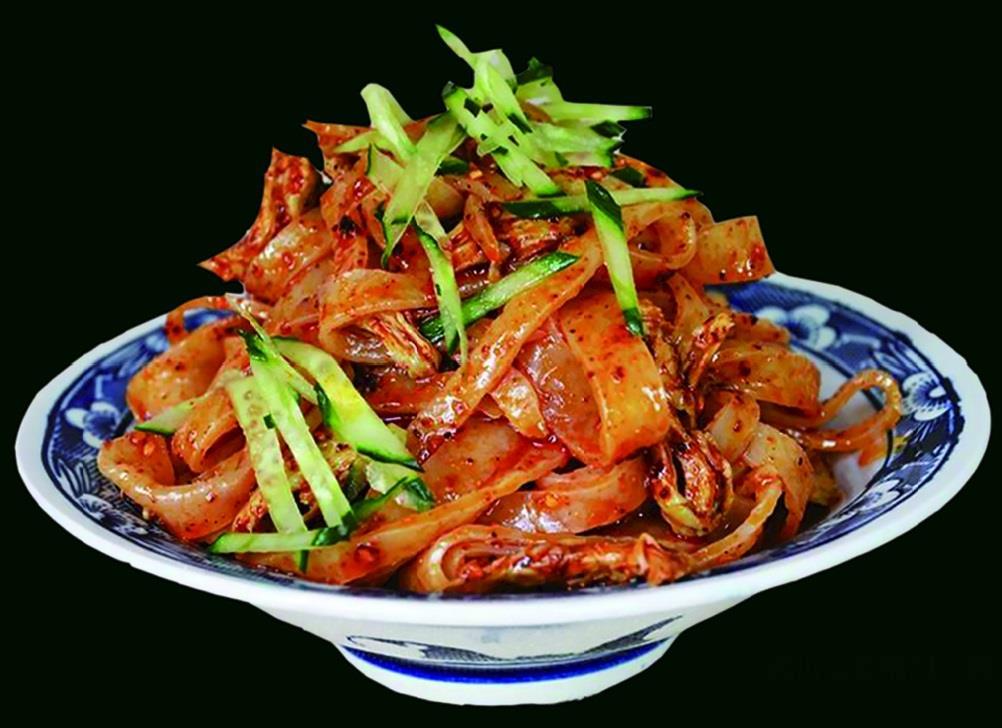 担担面:说起担担面,到过武山的人,十有八九都会对这种面食记忆犹新。面条光滑劲道,肉汤浓而不腻,素汤清淡可口,一勺油泼辣子、几滴四门香醋,一撮小菜,红绿相间,色香味俱全,一看就叫人直流口水。武山担担面,数洛门最集中。两口砂锅,一个盛肉汤,一个盛素汤,佐以生葱、生蒜、香菜等调味,味重油多,驱寒保暖。一两顶帐篷,三四条长板凳,担担面温饱着每一位食客,担担面的香味也延续了很多年。