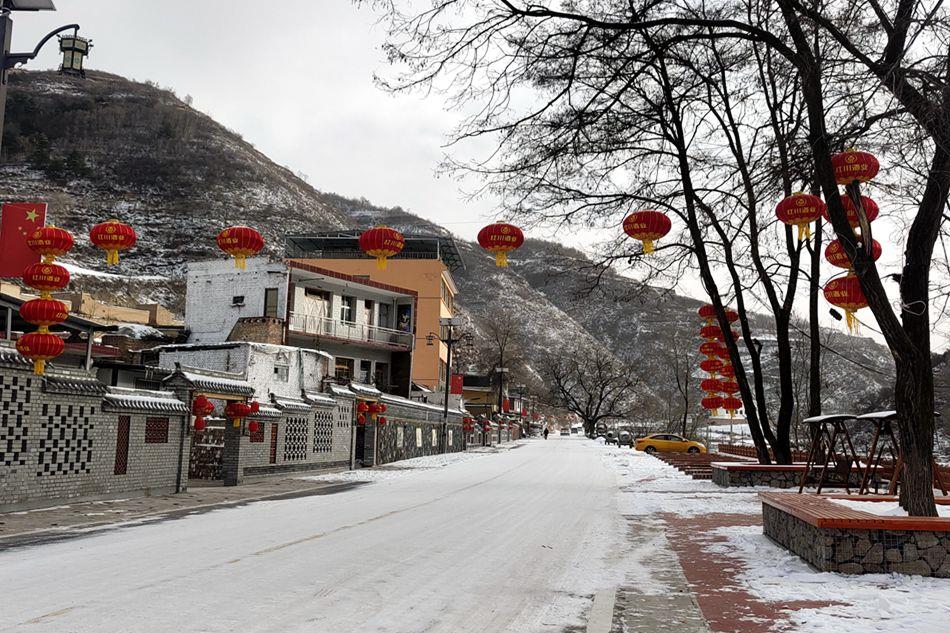 春节将至,温泉镇大街小巷张灯结彩,大红灯笼高高挂起,处处洋溢着节日的氛围,一派欢乐祥和景象。
