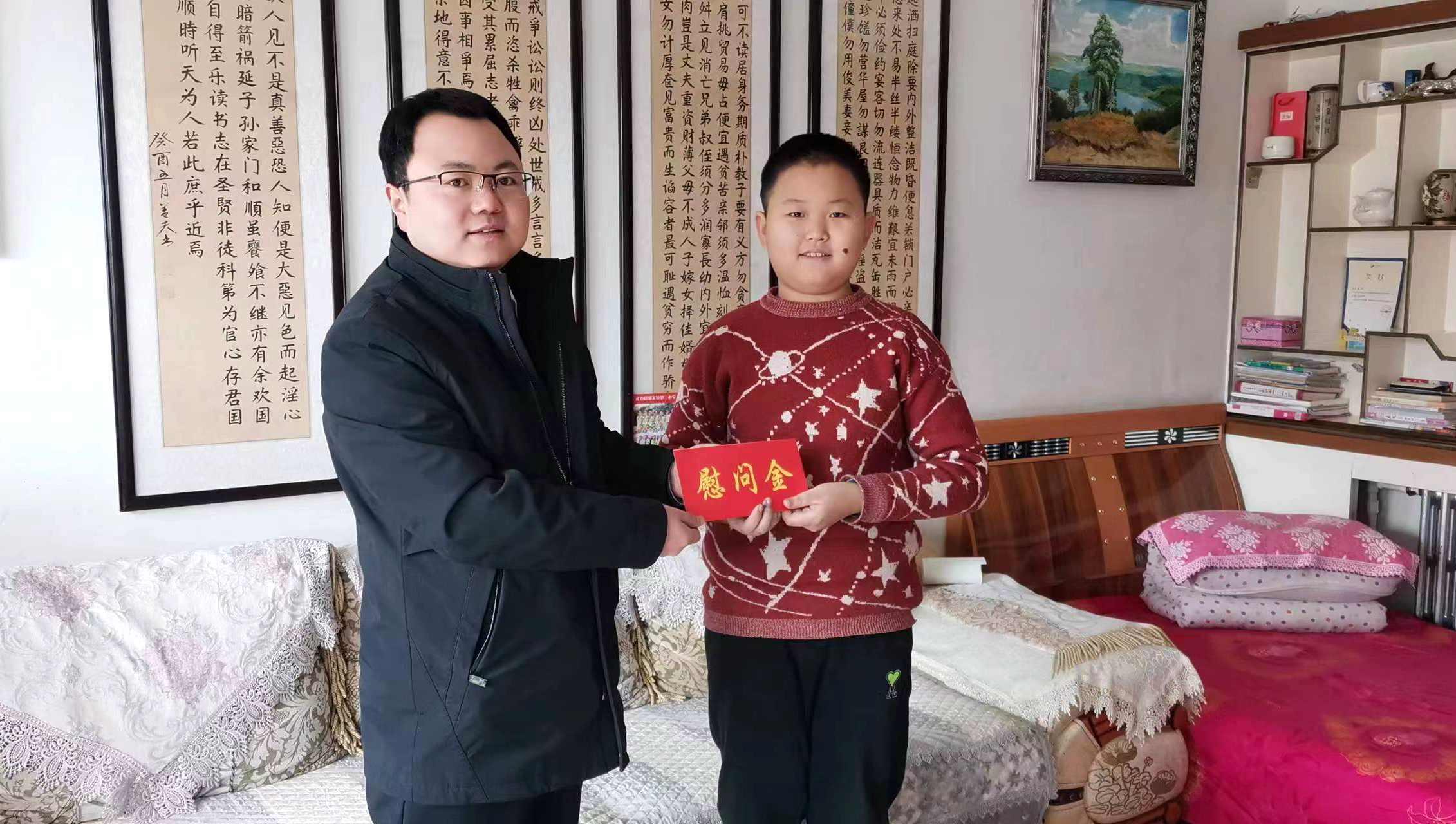 1月16日,市文明办委托县委宣传部走访慰问“新时代天水好少年”马启航,向他转达市文明办的亲切问候,送上慰问金和新春祝福。