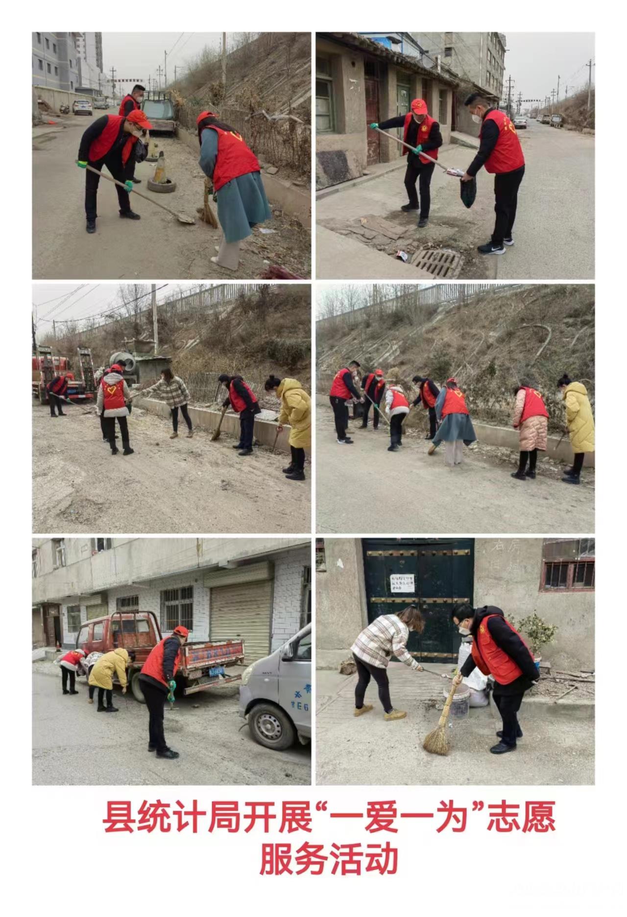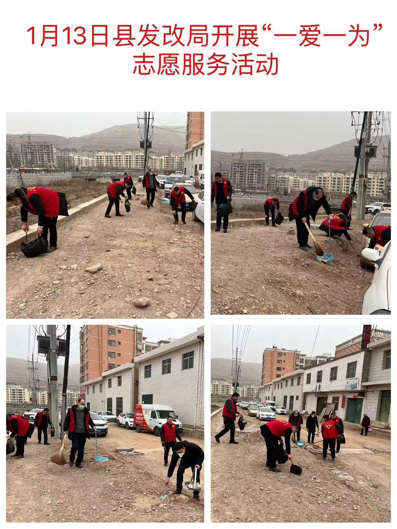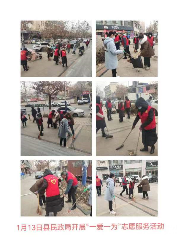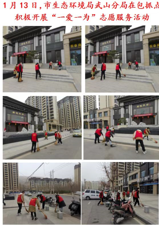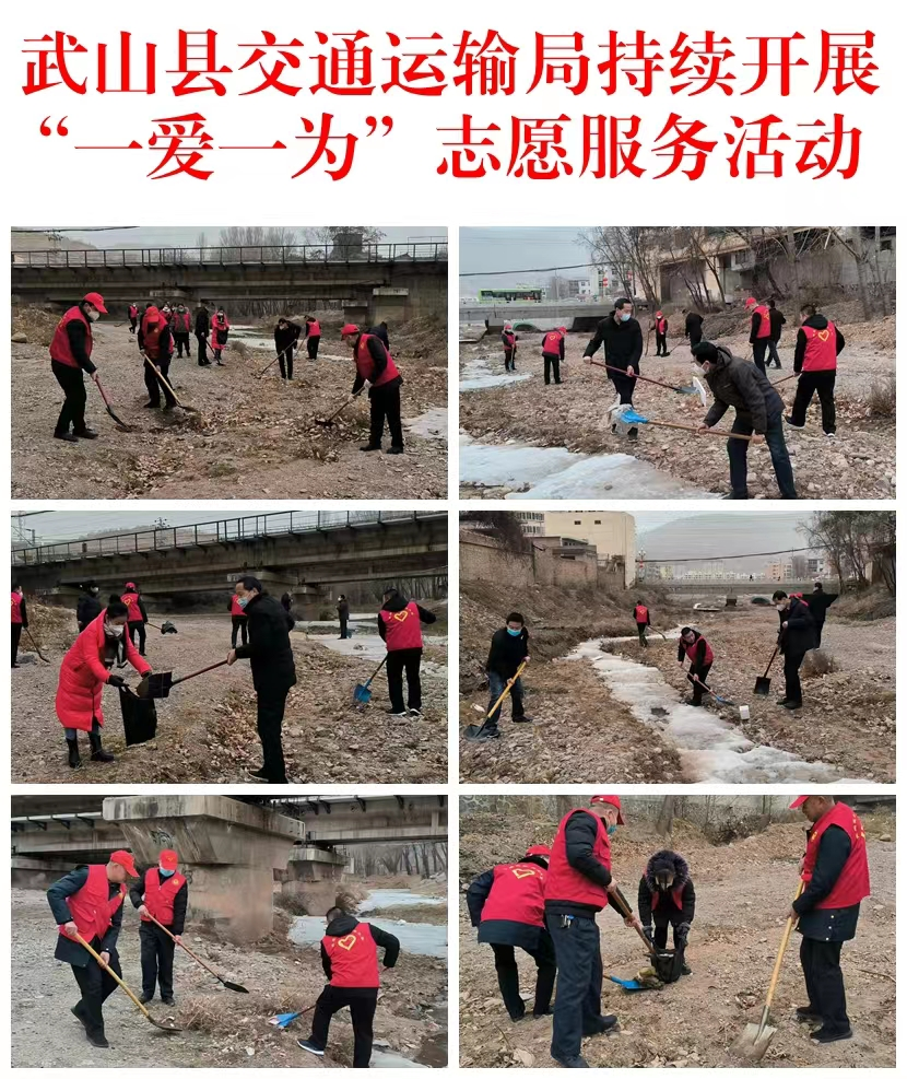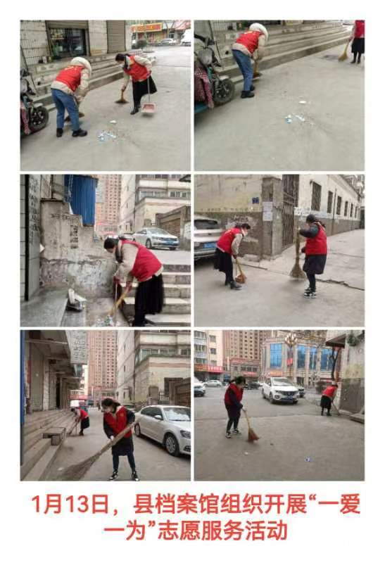 武山县融媒体中心1月13日讯(记者 唐文斌)新春临近,年味渐浓。为倡导文明健康的生活习惯,营造健康祥和、积极向上的文化氛围和节日气氛,1月13日,武山县各乡镇各部门各单位深入各自包抓街道、巷道、小区,组织干部群众志愿者认真开展以卫生清洁、杂物清除及积雪清扫等为内容的“一爱一为”志愿服务行动,不断提高广大群众的幸福感、获得感、安全感。