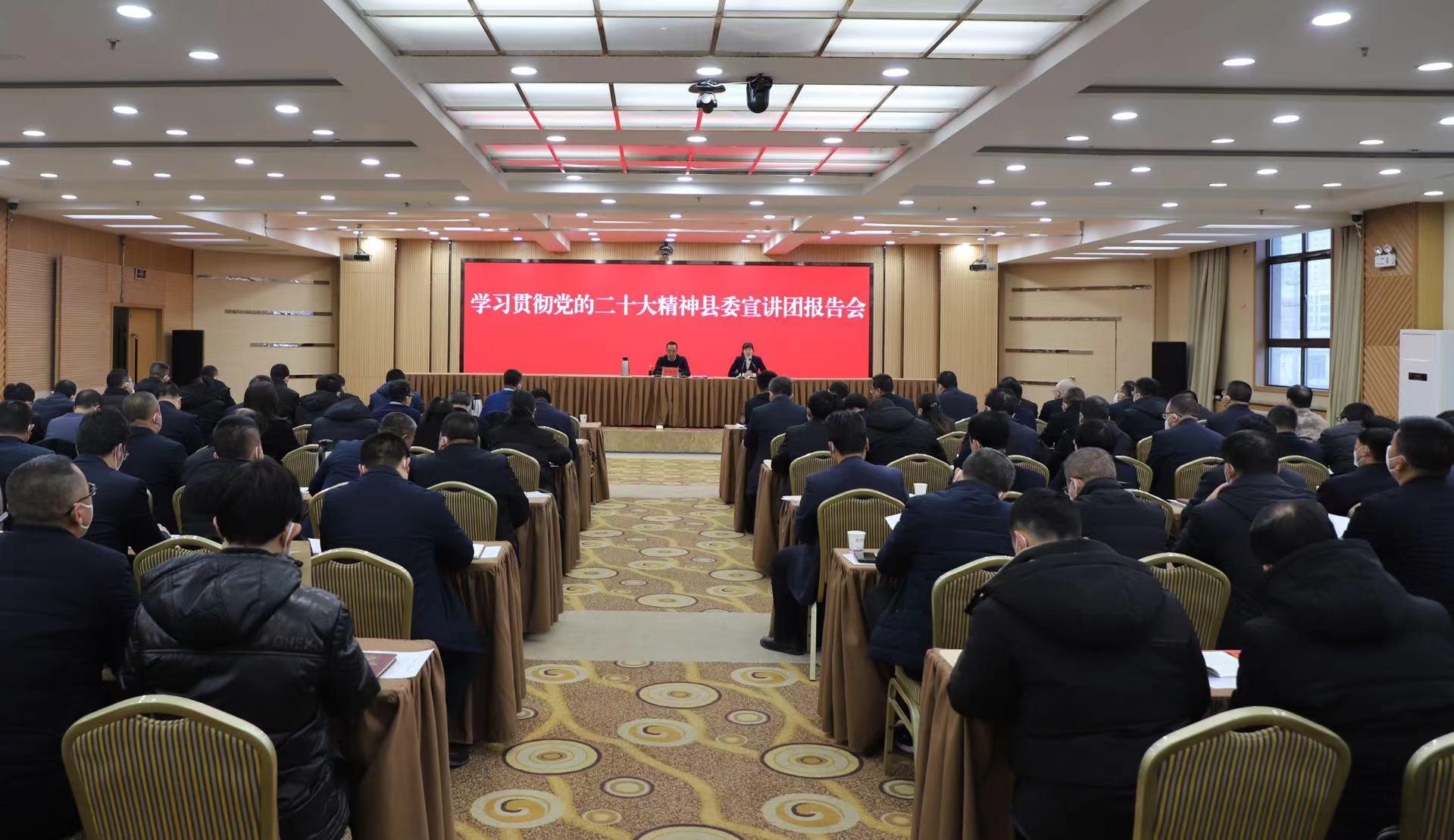 宣讲报告会上,王新强结合对党的二十大精神所学、所思、所悟和工作实际,从深入理解党的理论本质属性、坚持人民至上,切实坚定“四个自信”、坚持自信自立,切实把握“三个不动摇”、坚持守正创新,深刻认识“五个问题”、坚持问题导向,锤炼“七种思维”、坚持系统观念,紧盯党的“四大目标”、坚持胸怀天下等六个方面对党的二十大精神进行全面、深入、系统的解读,并就全县贯彻落实党的二十大精神提出明确要求。