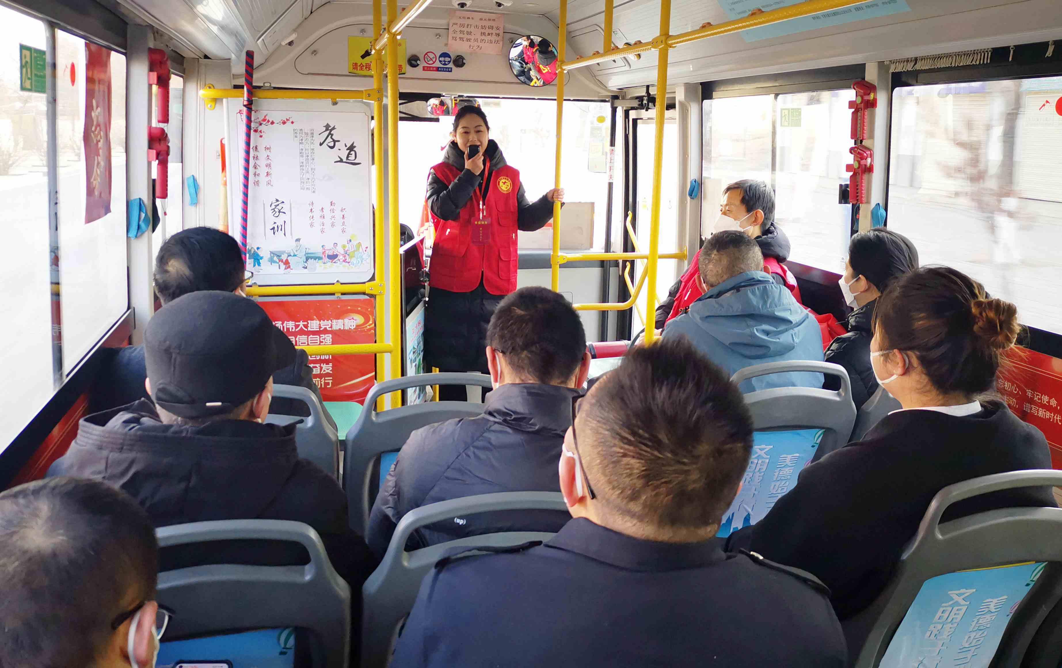 厚植城乡文明底色,弘扬道德传递幸福。着眼巩固提升“省级文明县”创建成果,利用公交车辆流动分散、辐射面广、醒目大方、贴近群众等优势,打造“幸福快车”新时代文明流动阵地,设置“新时代文明实践车厢”,利用车厢内展板、车载电视等媒介,广泛传播新时代文明新风尚,让文明理念真正的来到乘客身边。发挥“幸福快车”看得见、听得进、值得信的优势,发动“百佳模范”和“感动武山人物”“奉献武山人物”“武山好人”“好媳妇”“好婆婆”“文明家庭”“五星级文明户”“新时代好少年”等担任“幸福传递员”,用身边人身边事最生动、最有说服力的“活教材”现身说法、开展体验,采用“宣讲+”的形式,将宣讲活动与文明创建、道德建设、基层治理等结合起来,引导体验者成为志愿者,在体验中传播文明,大力弘扬社会主义核心价值观,以榜样力量进行示范引领,用先进事迹感召人、鼓舞人。同时全体一线驾乘人员立足本职,向乘客提供精准化、特色化的志愿服务,通过流动“幸福快车”讲好文明创建“大道理”,推动形成良好社会风尚。