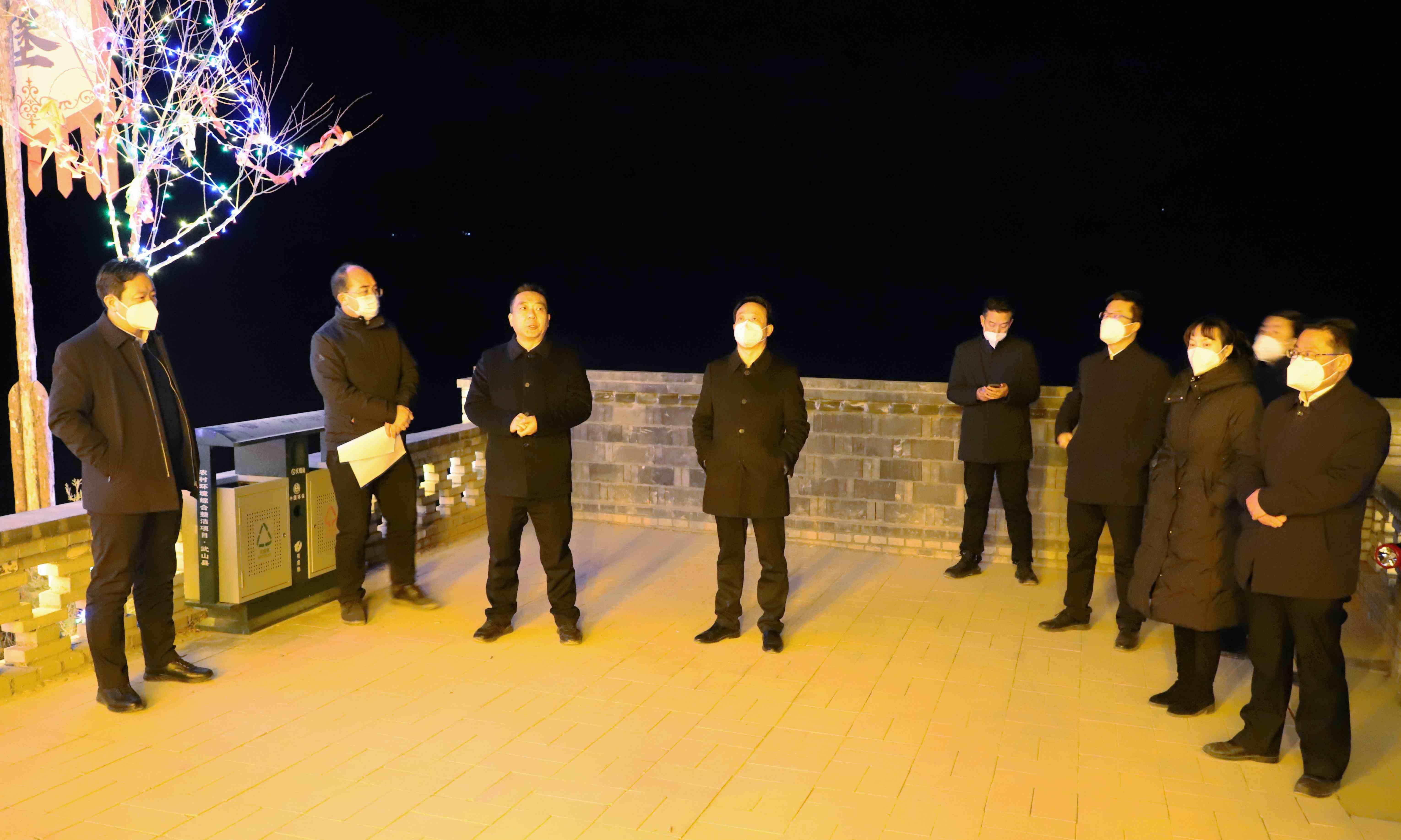 1月9日晚,县委书记王新强,县委副书记、县长王志成深入宁远古堡文化产业园检查指导亮化工作,县人大常委会主任孙德银,县委常委、宣传部部长胡丽霞,县委常委、城关镇党委书记王想成一同调研。