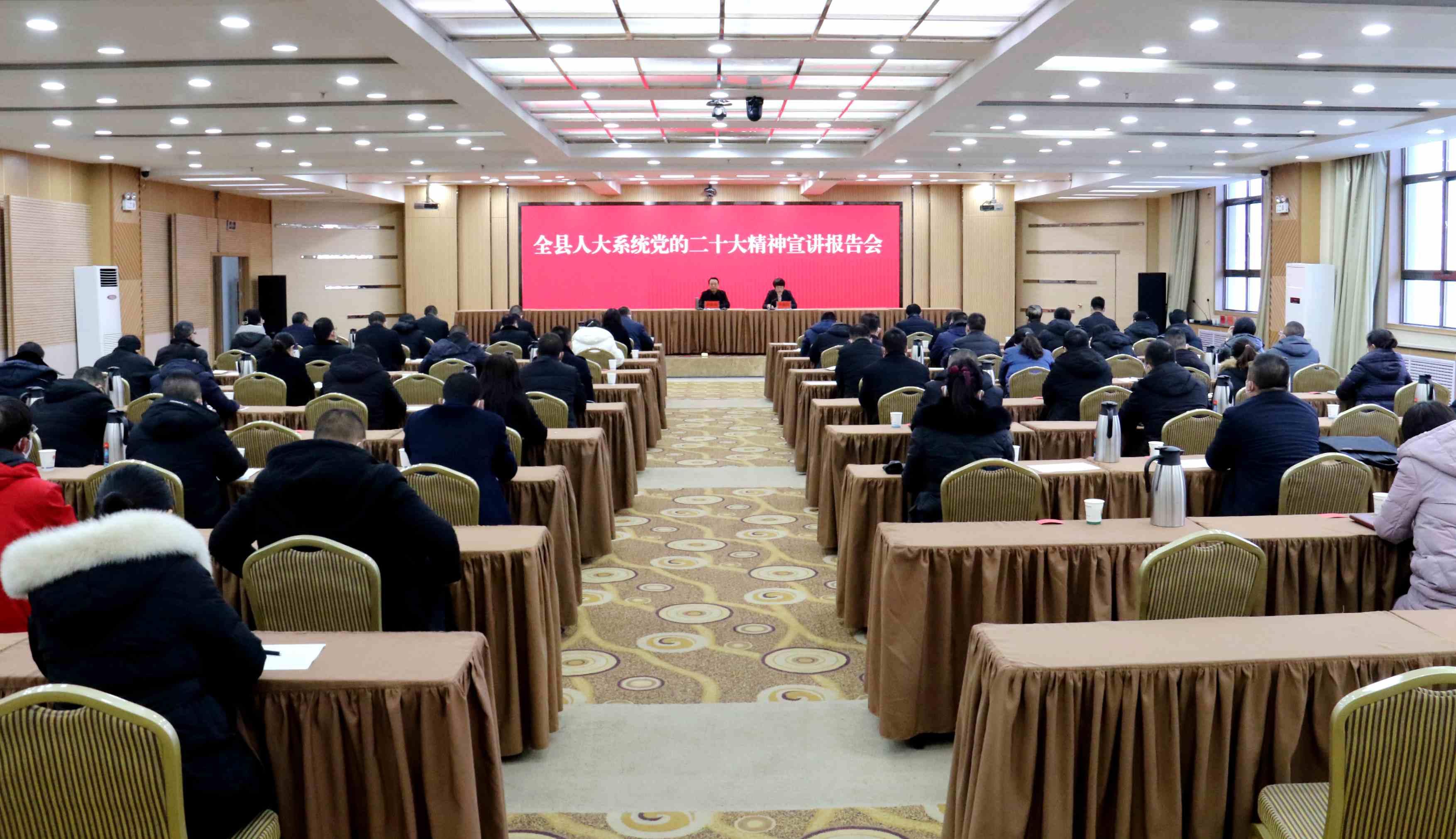 宣讲中,孙德银围绕党的二十大主题及主要成果、过去五年工作和新时代十年伟大变革、马克思主义中国化时代化、中国式现代化、全面建设社会主义现代化国家的目标任务、坚持党的全面领导和全面从严治党等多个方面,全面系统阐述和讲解党的二十大提出的重要思想、重要观点、重大战略、重大举措,并对全县人大系统全面深入学习宣传贯彻党的二十大精神进行了安排部署。