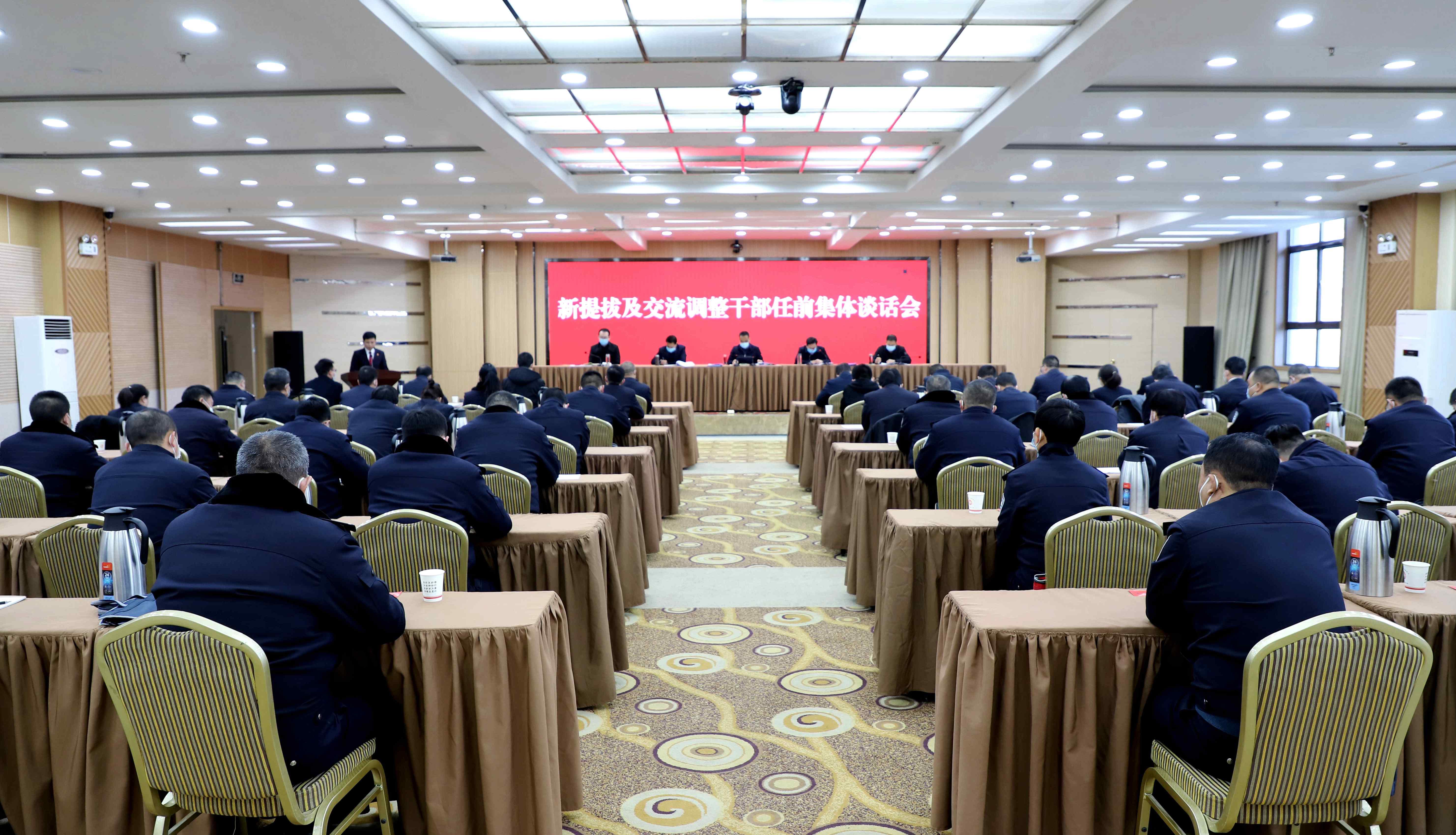 12月7日,武山县召开新提拔及交流调整干部任前集体谈话会,县委书记王新强出席并讲话,县委副书记、县长王志成主持会议,县政协主席庞明全出席会议,县委常委、县纪委书记、县监察委员会主任李康宁组织学习习近平论党风廉政建设和反腐败斗争摘要,县委常委、组织部部长宋昌华宣读县委任免文件,新提拔及交流调整干部代表作表态发言。