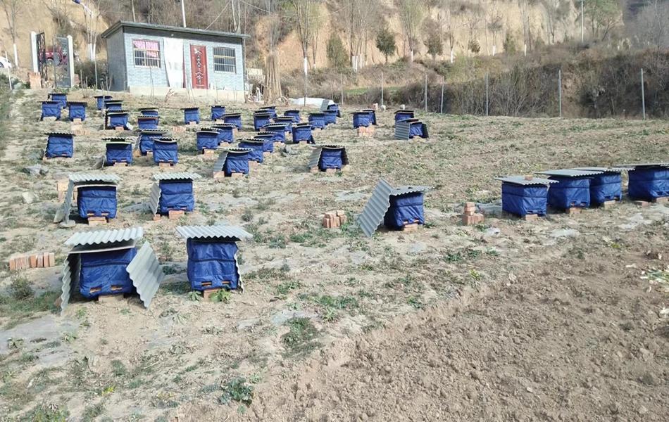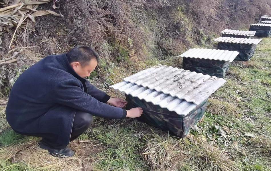 给蜜蜂做“保暖屋”的一幕,也在四门镇大蒿、水洞、麦山、侯堡、周湾等村纷纷上演,他们采取各种方法给蜂箱穿上上了厚厚的“保暖衣”。
