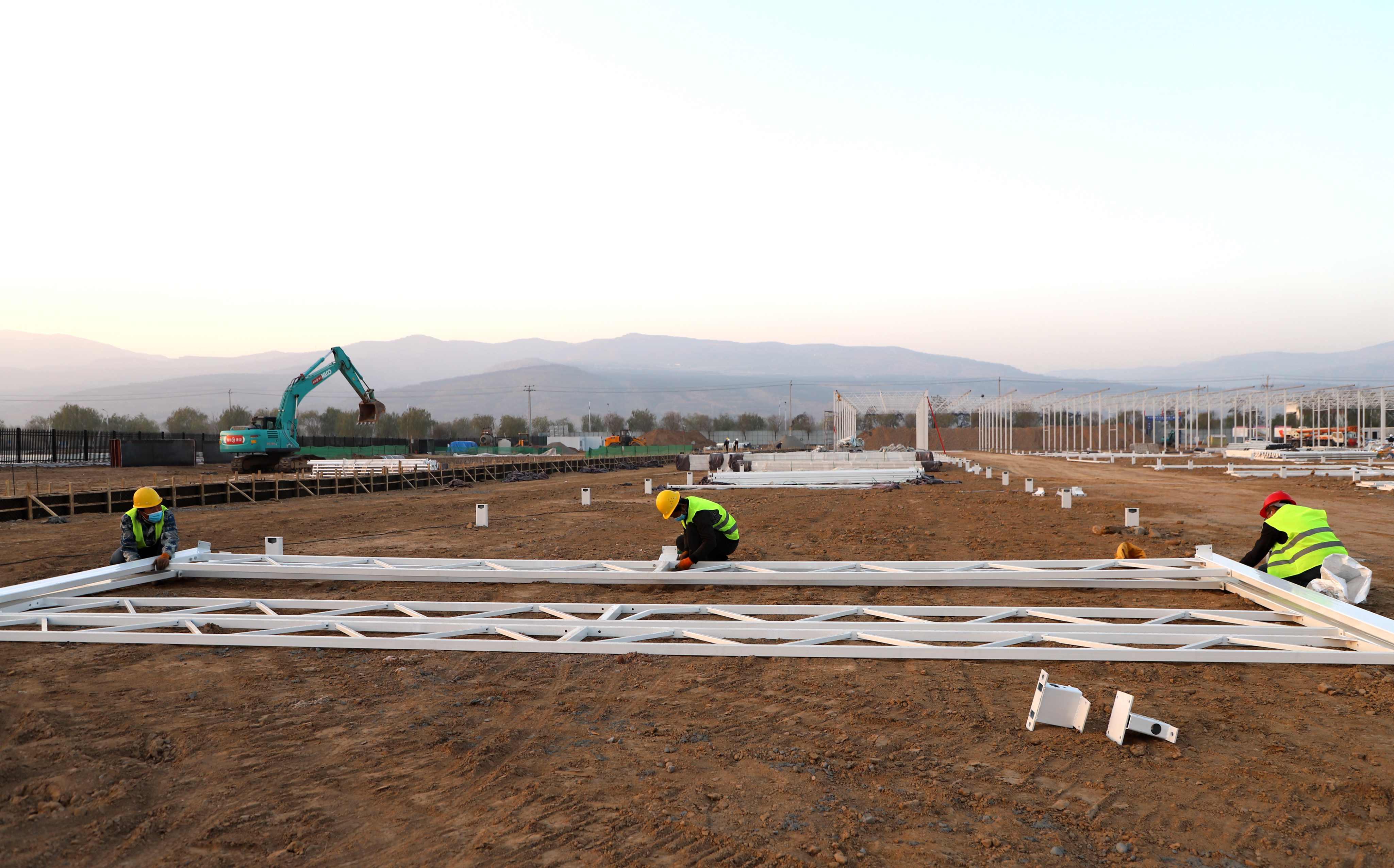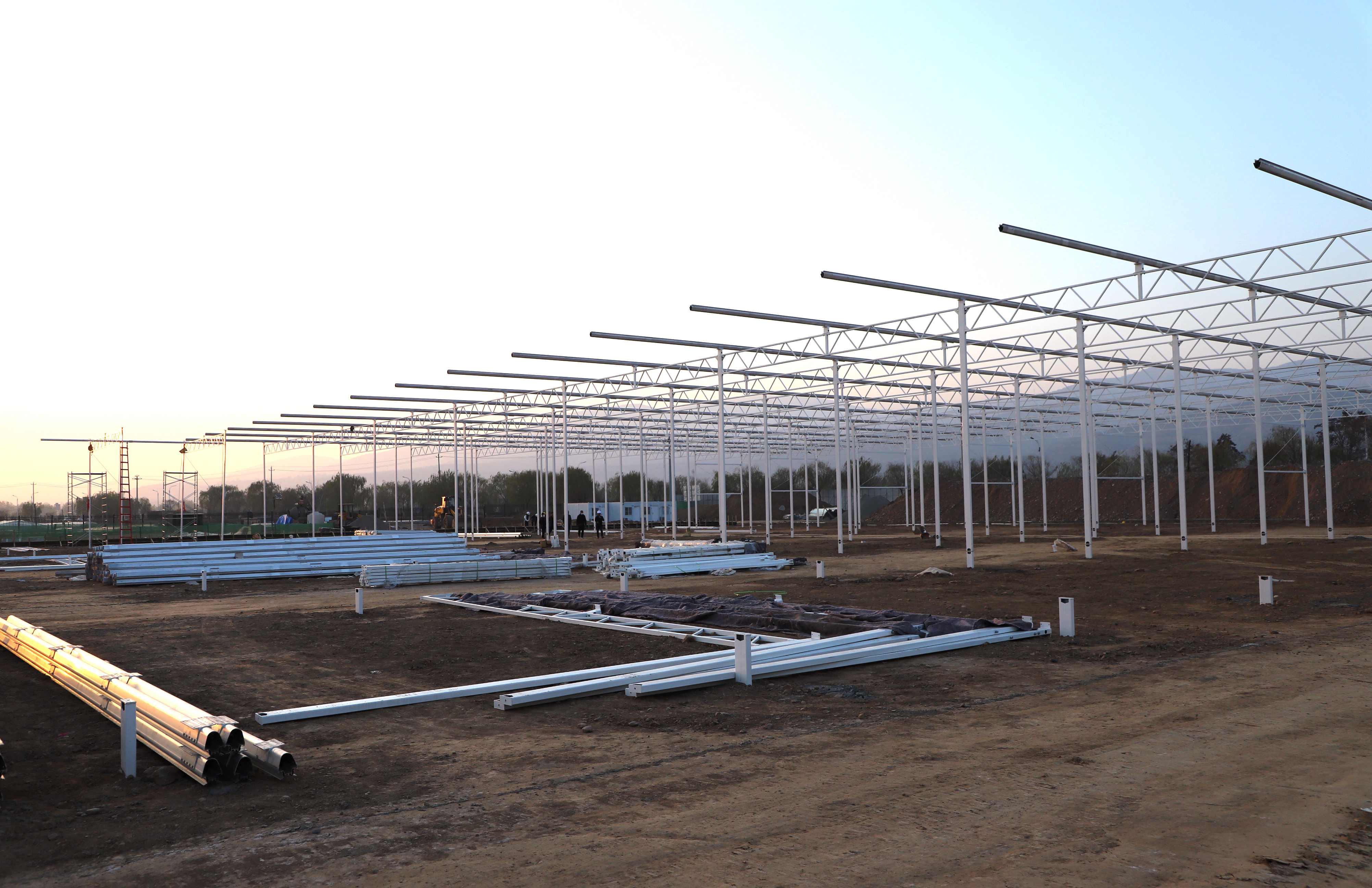 据现代农业产业园负责人介绍,二期项目已完成土地垫方平整、基础浇筑、围栏、物资库房和锅炉建设,水井、立柱和钢架结构正在安装,计划2023年4月底完成建设并投入运营。