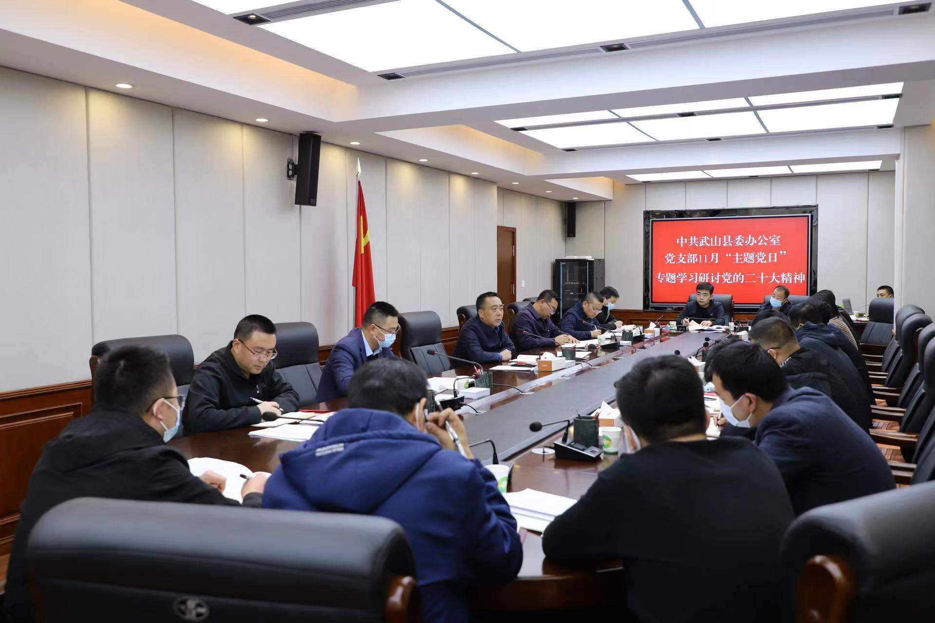 11月4日,县委办公室党支部召开11月份“主题党日”,县委书记王新强以普通党员身份参加。会议传达学习了《中共中央关于认真学习宣传贯彻党的二十大精神的决定》,重温了习近平总书记“5·8”重要讲话精神,办公室党员围绕“学习宣传贯彻党的二十大精神”主题进行了研讨交流。
