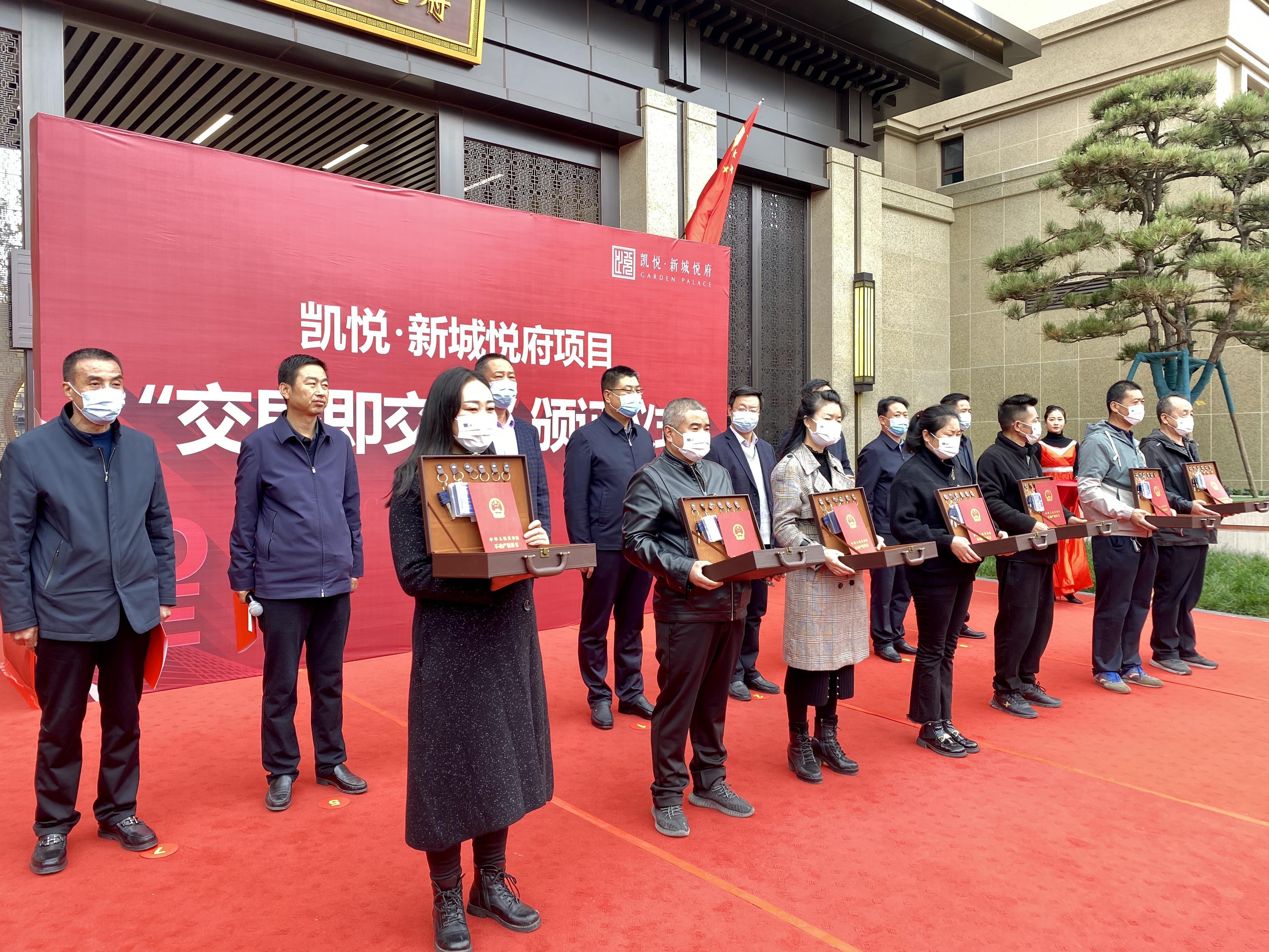 10月28日,武山县举行“交房即交证”启动仪式,现场为凯悦·新城悦府业主代表颁发不动产权证。县委常委、副县长赵百祥,县人大常委会副主任郭海涛,县政协副主席吴健明出席仪式,县直有关部门和乡镇、驻县有关金融机构负责人及全县商品房开发企业代表参加仪式。