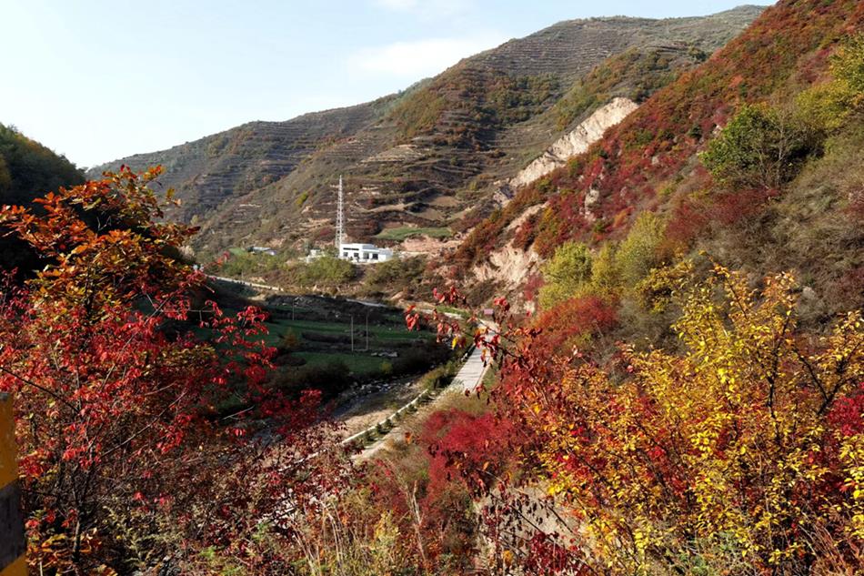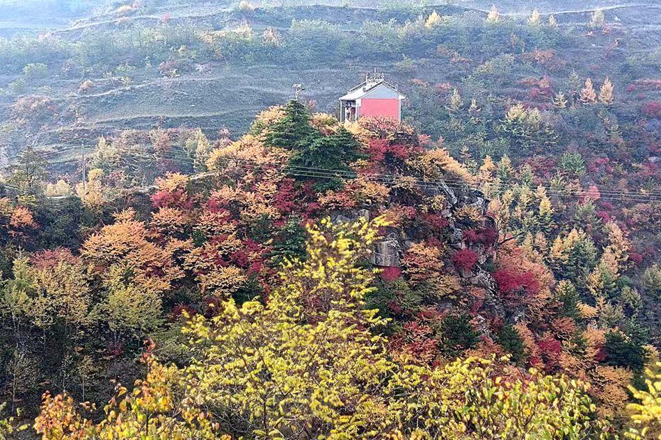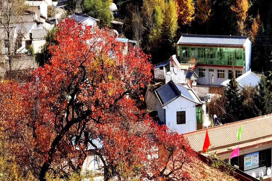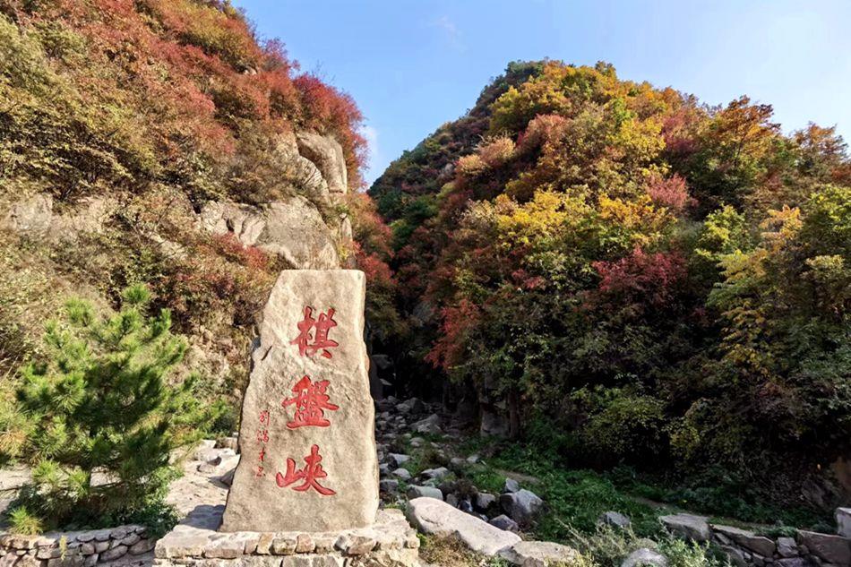 棋盘峡口涓涓细流顺山而下,火红的枫叶与悬挂于峡口的青松翠柏相互点缀,树木各呈色彩,漫山遍野的秋色,悠然间仿佛身在画中。驱车进入棋盘村,道路两旁多彩的秋叶摇曳多姿,山的巍峨在秋的盛装下显得厚重与俊俏,深深浅浅的红层层交叠,随山势连绵起伏,在这里,您可以寻觅疏篱茅舍、鸡鸣狗吠,曲径通幽的村落绝色秋景。