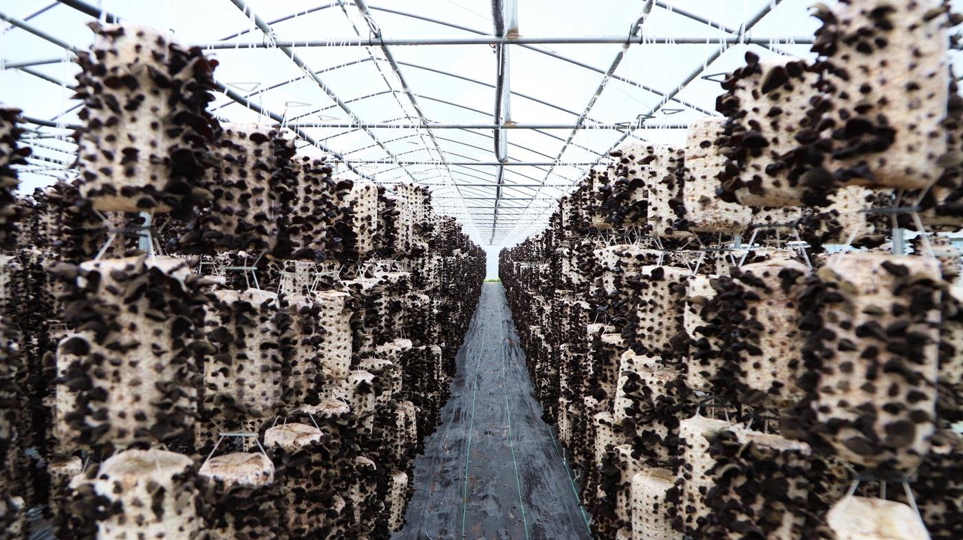 深秋,龙台镇董庄、青山村的食用菌进入了丰产季。走进食用菌基地大棚,菌香扑鼻而来,一袋袋菌棒整齐排列,一簇簇木耳肥嫩绽放,一朵朵香菇伸柄展伞,长势喜人。村民们穿梭于大棚间,娴熟地采摘已成熟的木耳和香菇,脸上露出丰收的喜悦。