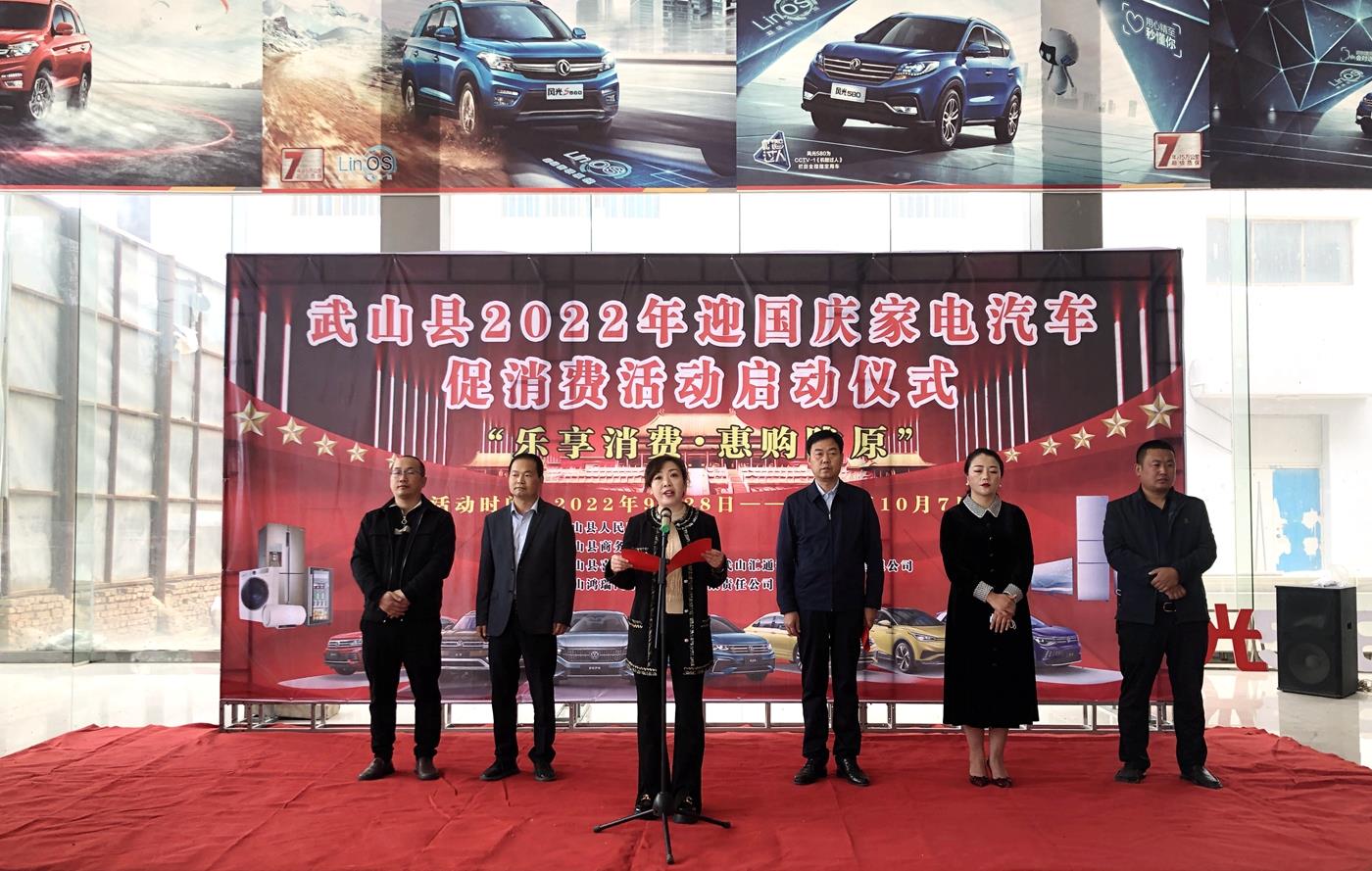 武山县融媒体中心9月29日讯(记者 赵超 实习生 陈妍)9月29日,武山县迎国庆“乐享消费·惠购陇原”家电汽车消费促进活动正式启动。副县长刘莉娜出席启动仪式并讲话,有关商户、企业代表参加了此次活动。