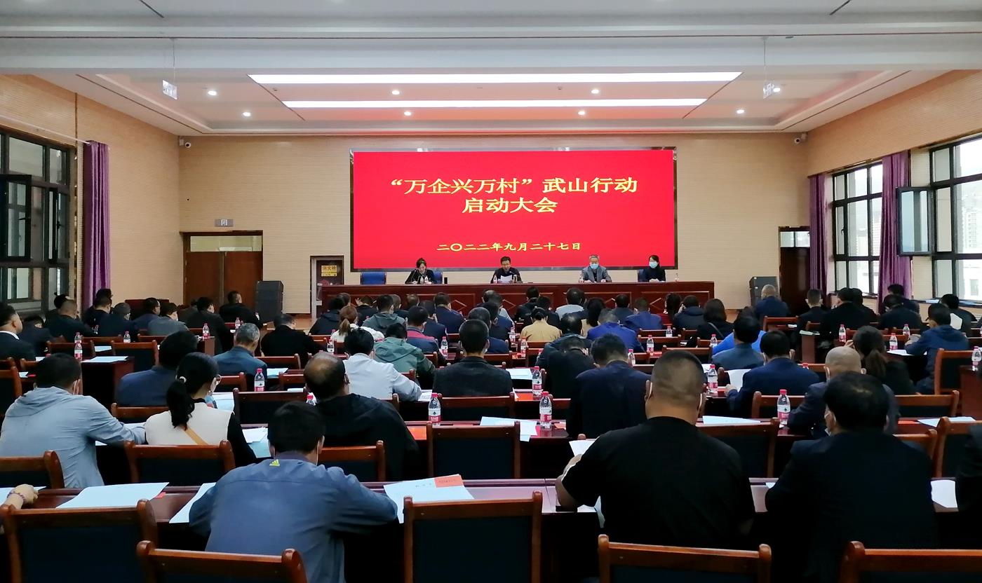 武山县融媒体中心9月28日讯(记者 彭雪)9月27日,武山县召开“万企兴万村”武山行动启动动员大会。县委常委、统战部部长李森出席会议并讲话,县人大常委会副主任骆育喜、县政协副主席党荣华出席会议,副县长刘莉娜主持会议,各成员单位和金融机构负责人、各乡镇分管领导、相关企业和结对帮扶村负责人参加会议。