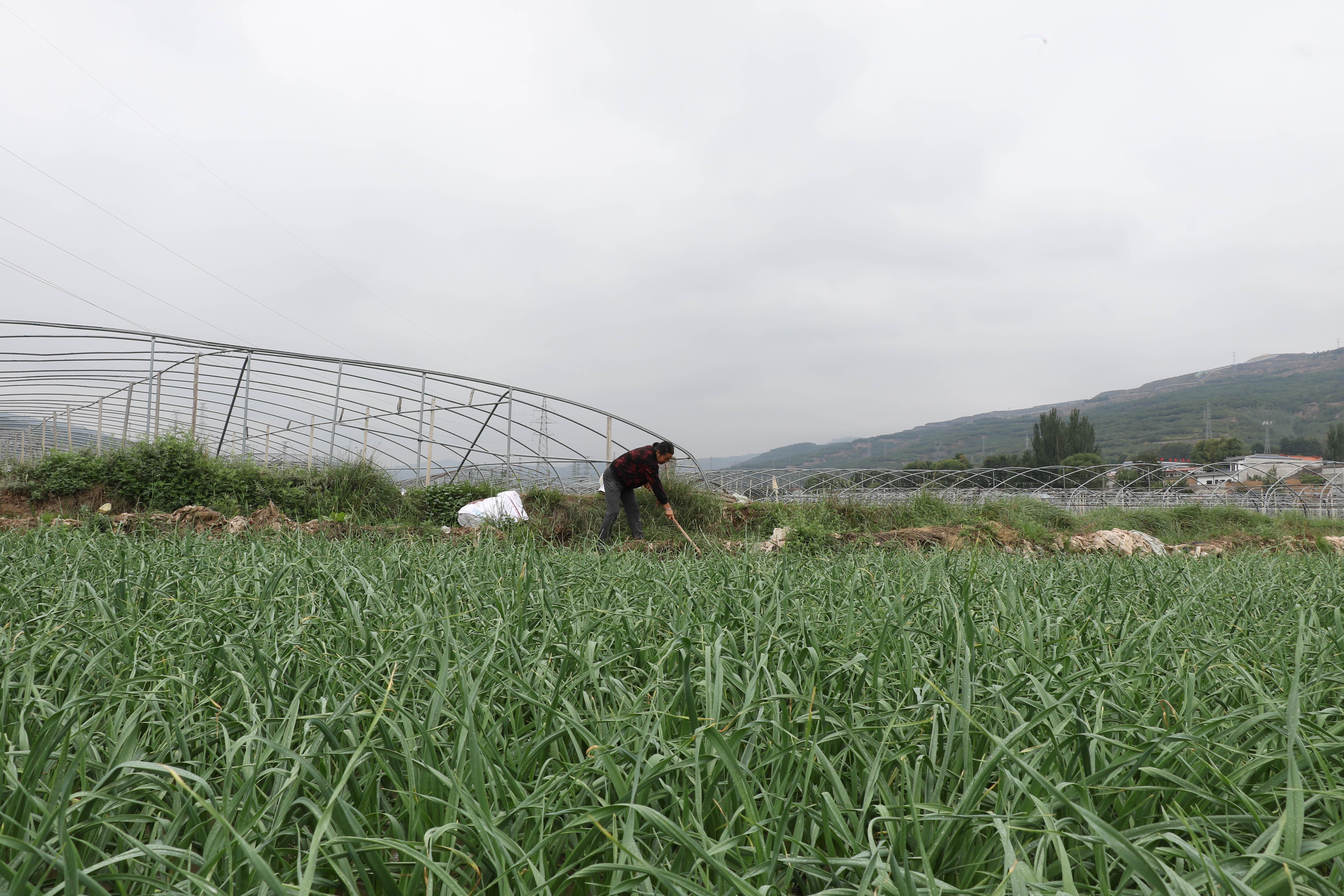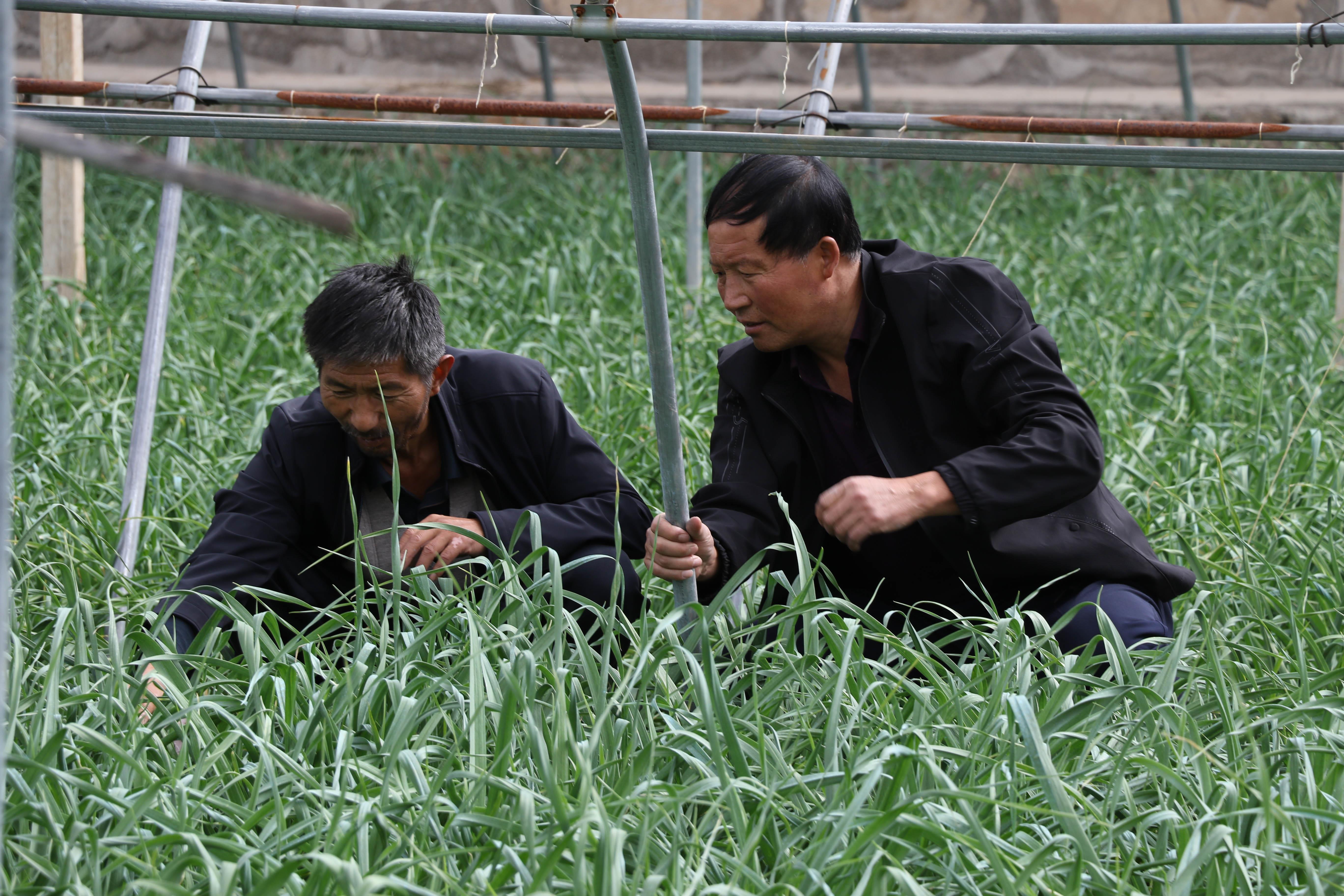 武山洛门镇郭庄村,渭河支流大南河流过,是大南河流域标准化设施蔬菜主产区之一。五月种的蒜苗,在菜农精心照料之下,即将迎来丰收季。村党支部书记李小东最近跑前跑后,协调蒜苗灌溉用水问题,确保蒜苗顺利上市“喝饱水”。看到菜农陈银海在地边忙碌,他凑上去,一起查看蒜苗长势。
