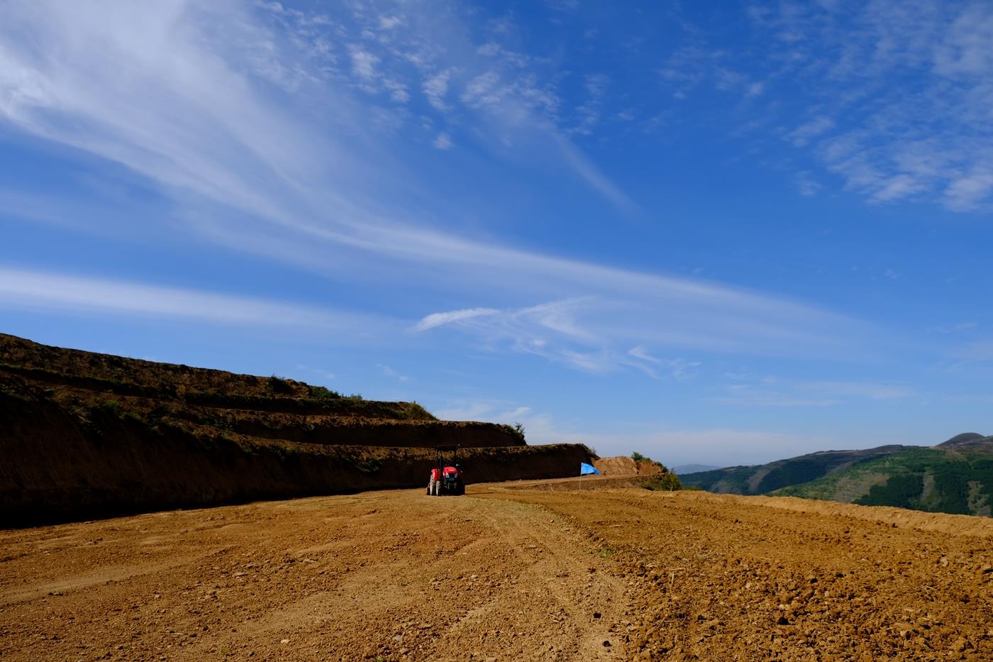 金秋,记者来到海拔两千多米的武山县榆盘镇四湾村高标准农田建设项目现场,放眼望去,曾经荒草丛生、坑洼不平的土地在耕地机的繁忙耕作下变成了一亩亩平整广阔、设施齐全的高标准农田。趁着秋耕秋种的好时节,早已平整过的地里已经撒上了一粒粒麦种和油渣养料,农机专业合作社的负责人李有德正开着他的大型农用机来往穿梭耕种作业,机器声隆隆作响,肥沃的黄土里播下农民来年的“希望”。