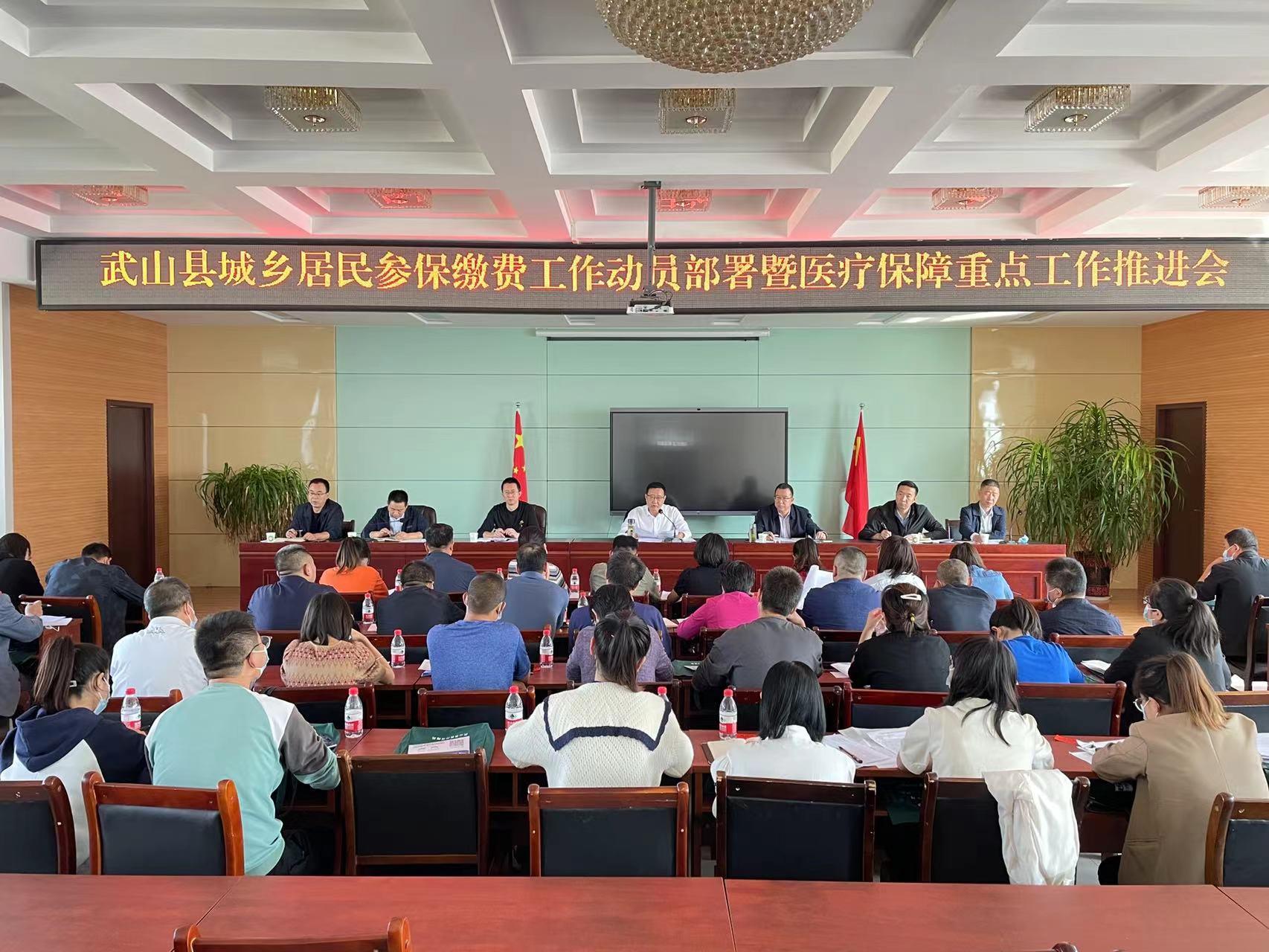9月15日,武山县组织召开全县城乡居民参保缴费工作动员部署暨医疗保障重点工作推进会,副县长李峰出席会议并讲话。县医保局班子成员,各乡镇和县民政局、县税务局分管领导,定点医疗机构负责人,以及相关单位业务人员参加会议。