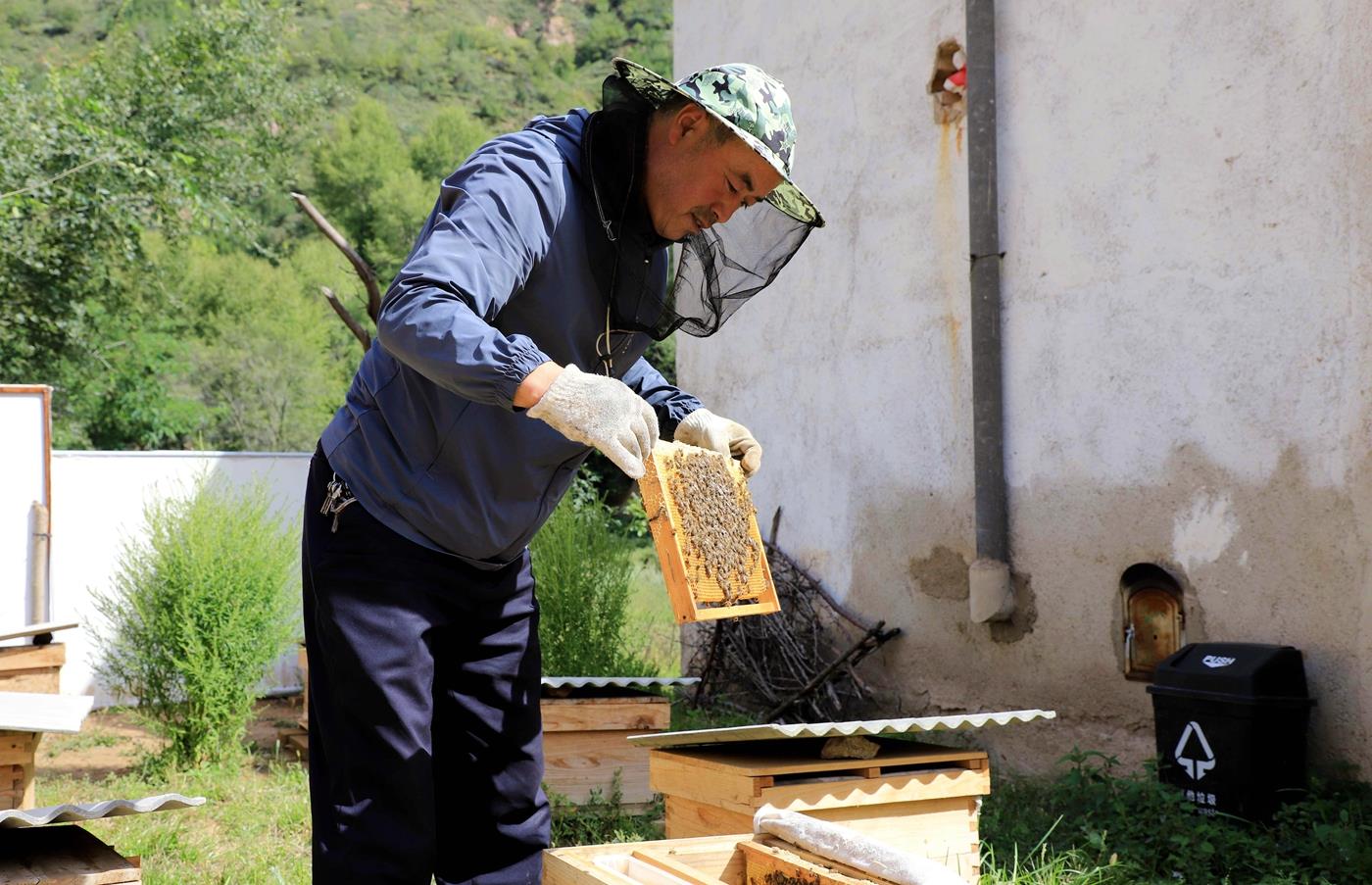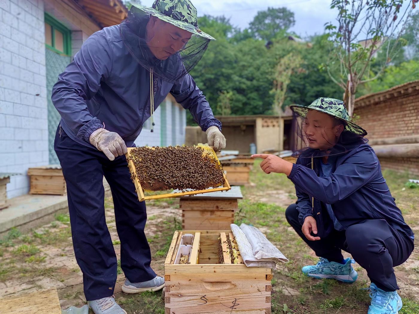 “聂河山大沟深,结合自身的自然条件,养其他的成本比较高,还比较费力费人,所以想到了养蜂。”聂河村驻村干部汪旭东介绍,在全镇集体经济增收动员会后,村上召开党员代表大会,商议发展目标,“有人说种植,有人说养猪,但都不符合村情。正好村里环境好,有十几户自己养蜂的,就定下发展中蜂养殖。”