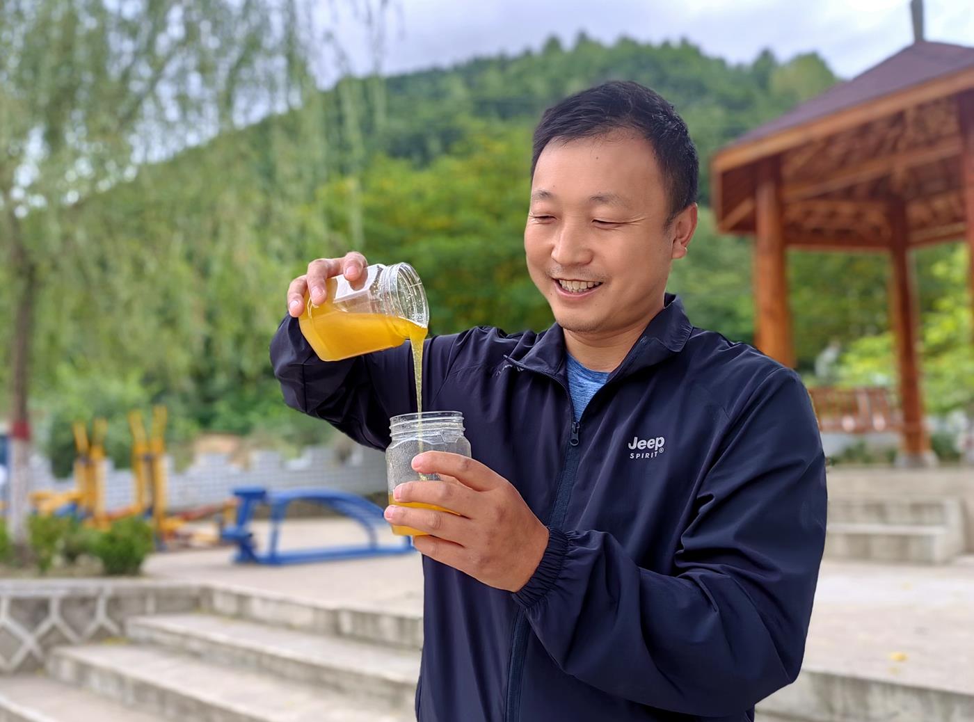 有了去年的成功经验,今年聂河村的集体经济养蜂产业更加“甜蜜”了。“最近这几天,我们已经酿出了约400斤蜂蜜,今年的集体经济又是一个大丰收。”汪旭东拿着两罐蜂蜜,对着镜头,推介起了本村的甜蜜事业——“天然酿好蜜,源自天然,品质才好,欢迎大家前来温泉镇聂河村品尝‘甜蜜’。”